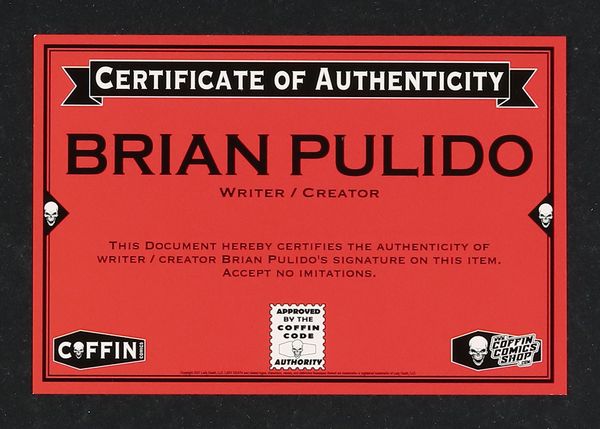 Signed by Brian Pulido with Coffin Comics certificate of authenticity. High quality print on heavy stock. 11" x 17".