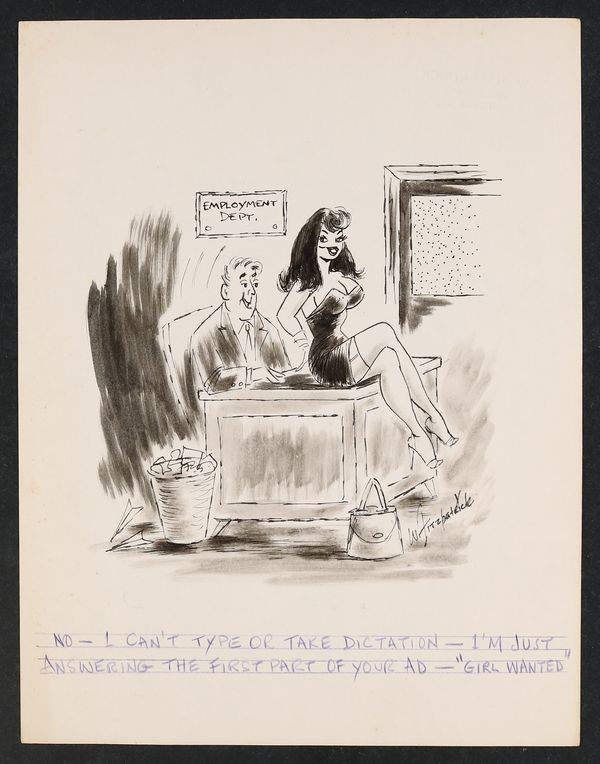 Original Art Girl Wanted Pinup Gag Strip by Walter Fitzpatrick