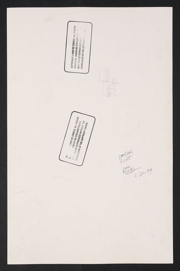 One of the more unique subplots in the epic No Man's Land Event, Two-Face's obsession with and kidnapping of Renee Montoya continues to play out here as Renee discusses the situation with her also-captive parents. Some great framing here from Scott who parallels Two-Face's split personalities with Renee positioned between her parents whose opinions on the matter somewhat differ. Pencil and ink on DC Comics art board. 11 1/4" X 17".