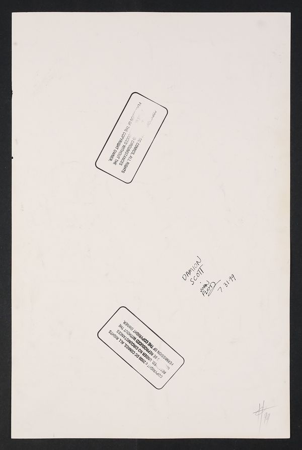 While the trial of Jim Gordon (presided over and prosecuted by Two-Face, of course) begins, the Dynamic Duo do a little recon and find that things might be a little more complicated than they expected. A fantastic central image of Robin framed by binocular panels! Pencil and ink on DC Comics art board. 11 1/4" X 17".