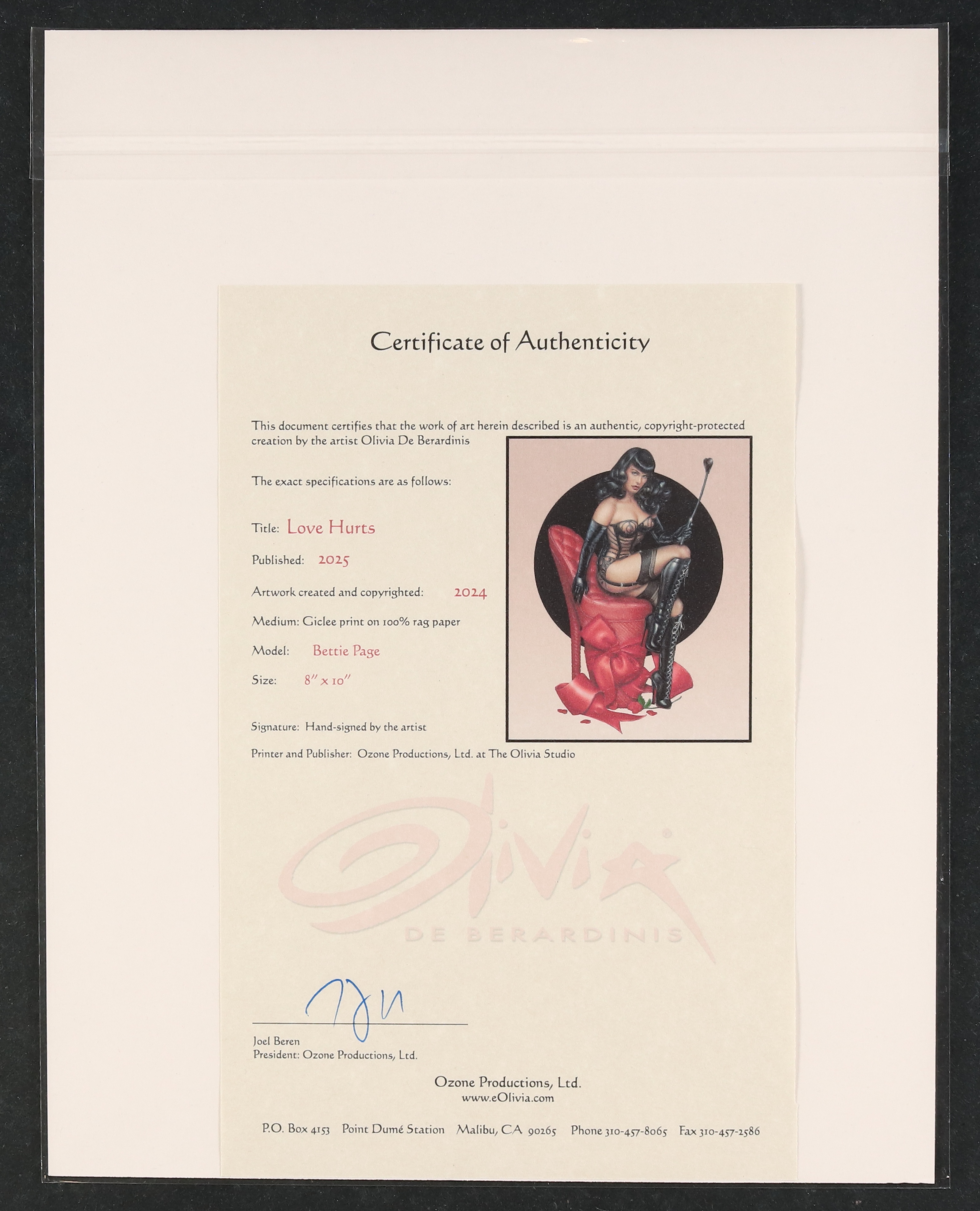 Love Hurts (Bettie Page) Print by Olivia de Berandinis