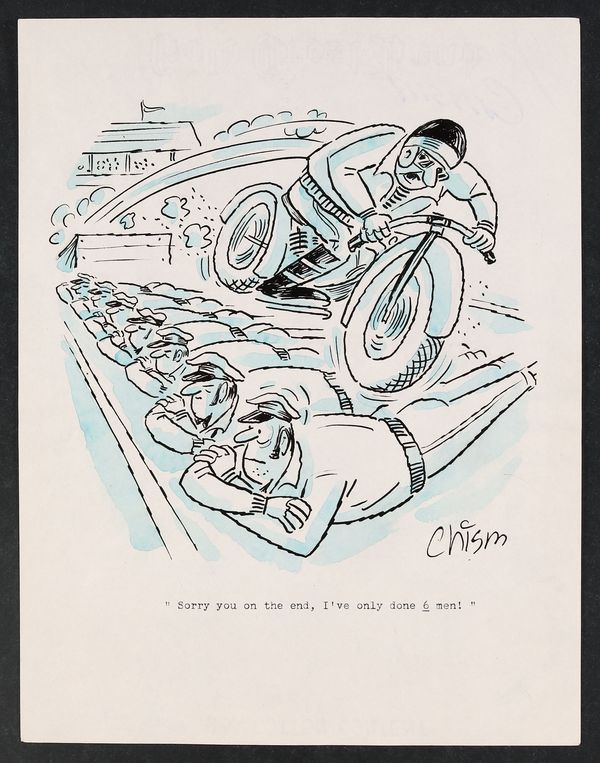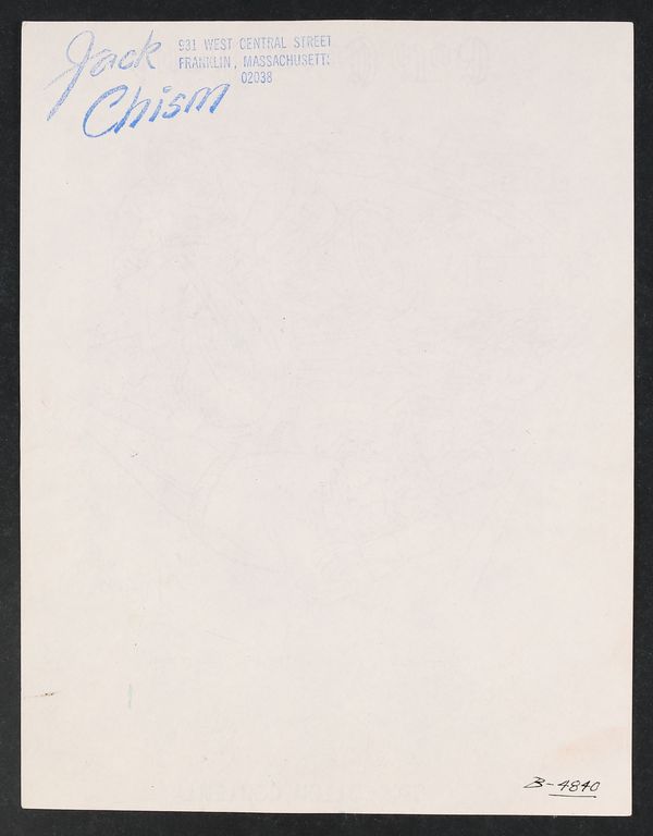 Chism was a prolific cartoonist, contributing mainly to Charlton's compilations including Good Humor and Cartoon Carnival. Signed by the artist. Pencil and ink with watercolor on paper with a custom stamp from Chism on the reverse. 8 1/2" x 11"