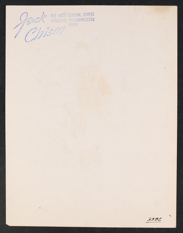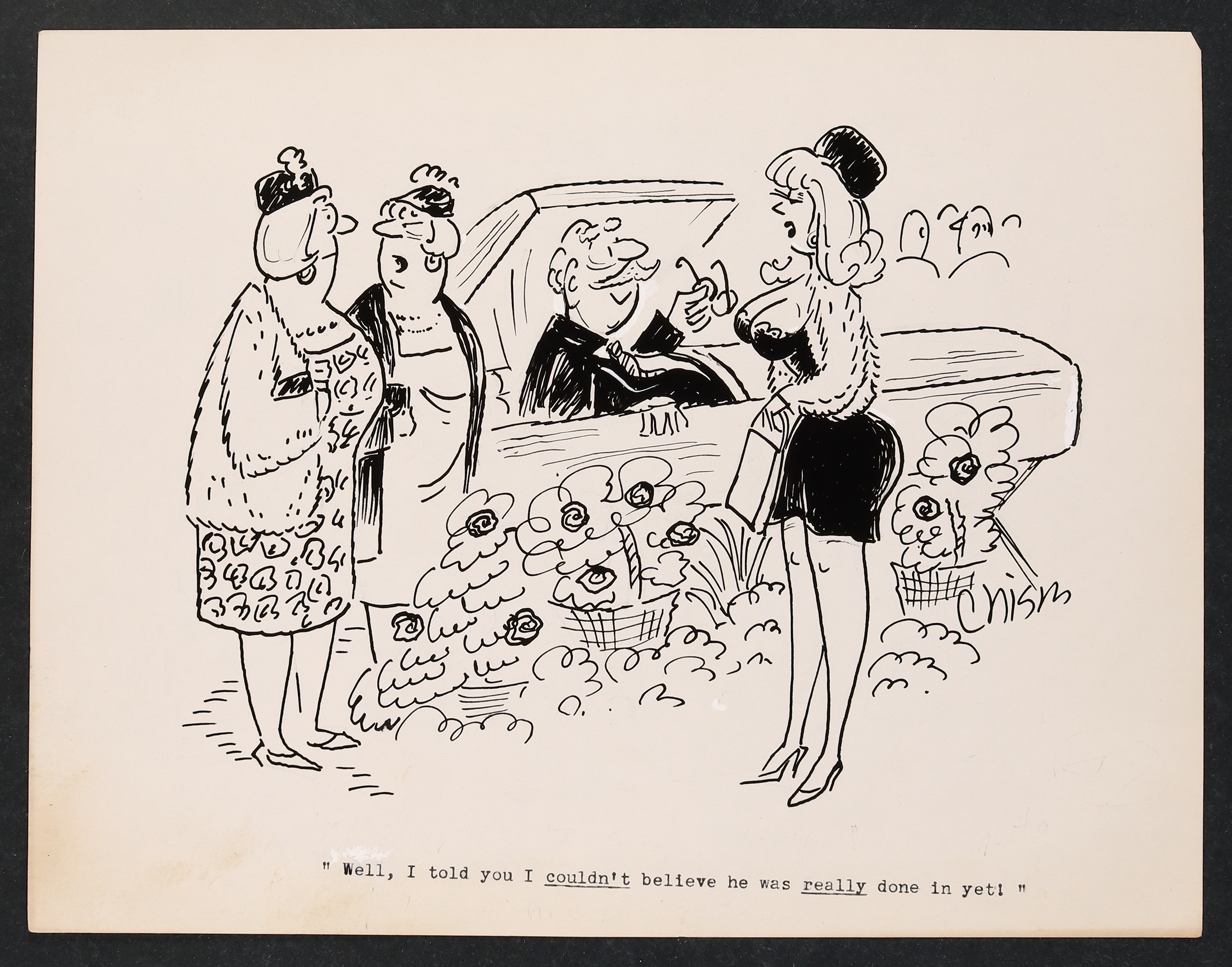 Chism was a prolific cartoonist, contributing mainly to Charlton's compilations including Good Humor and Cartoon Carnival. Signed by the artist. Pencil and ink on paper with a custom stamp from Chism on the reverse. 8 1/2" x 11"