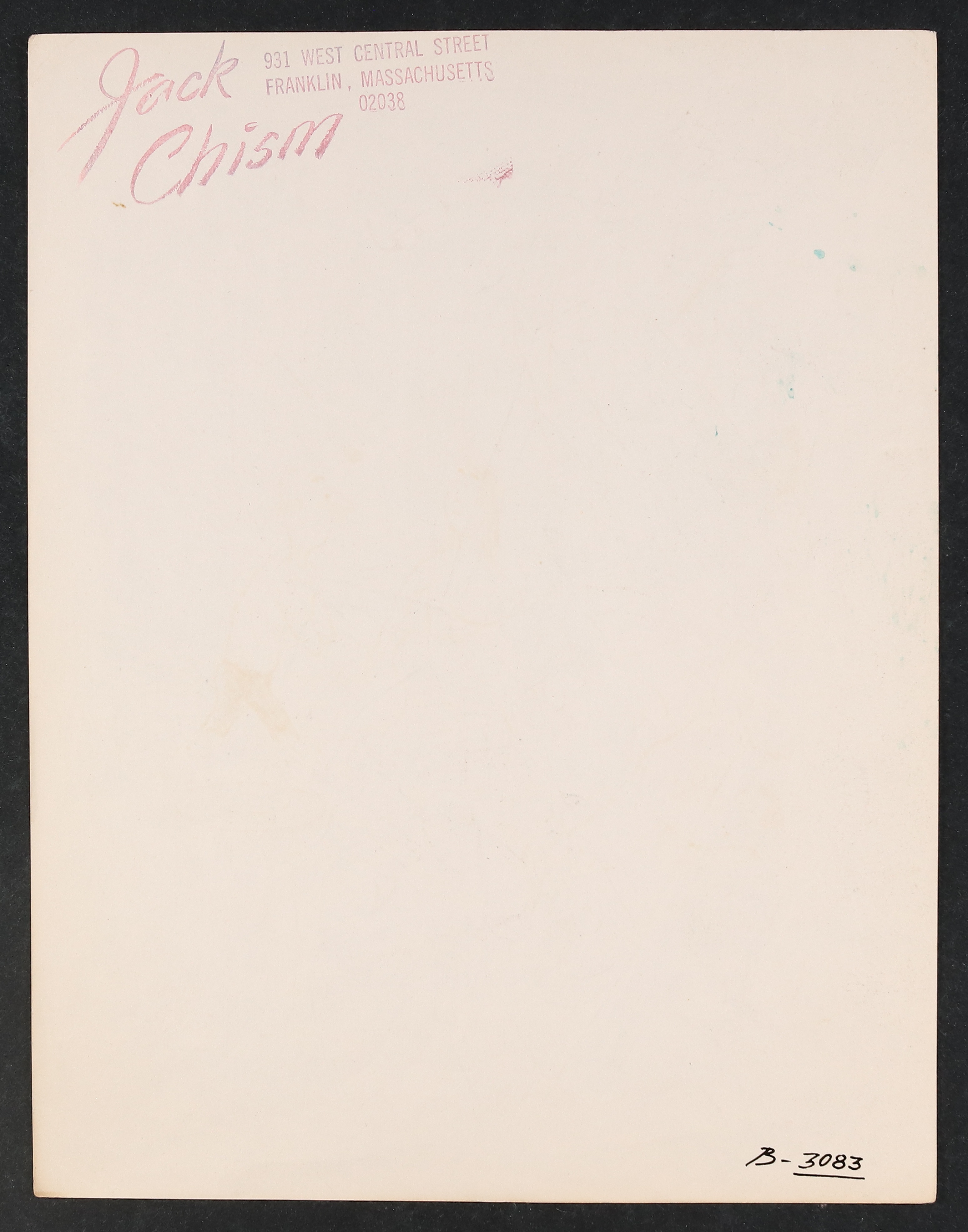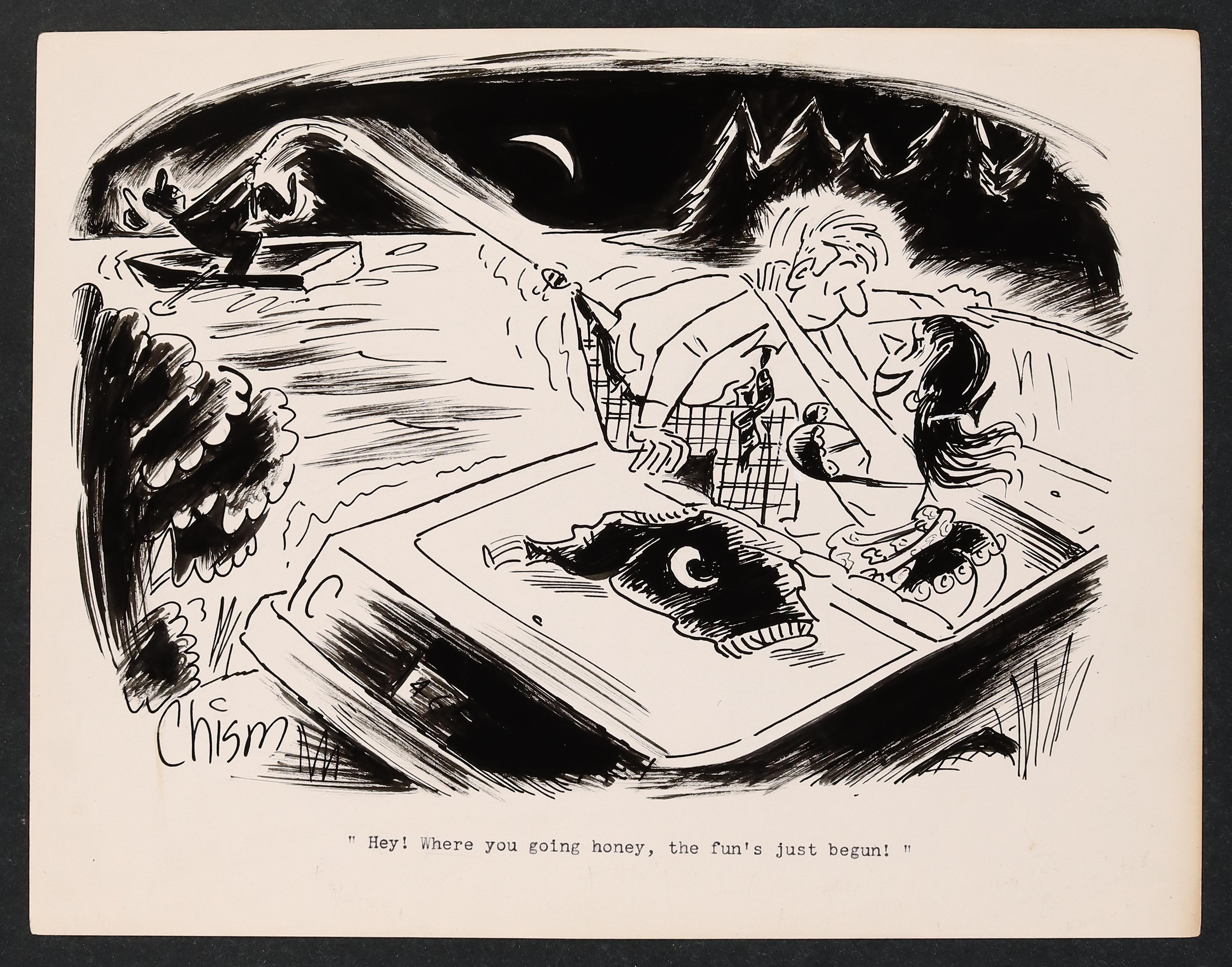 Chism was a prolific cartoonist, contributing mainly to Charlton's compilations including Good Humor and Cartoon Carnival. Signed by the artist. Pencil and ink on paper with a custom stamp from Chism on the reverse. 8 1/2" x 11"