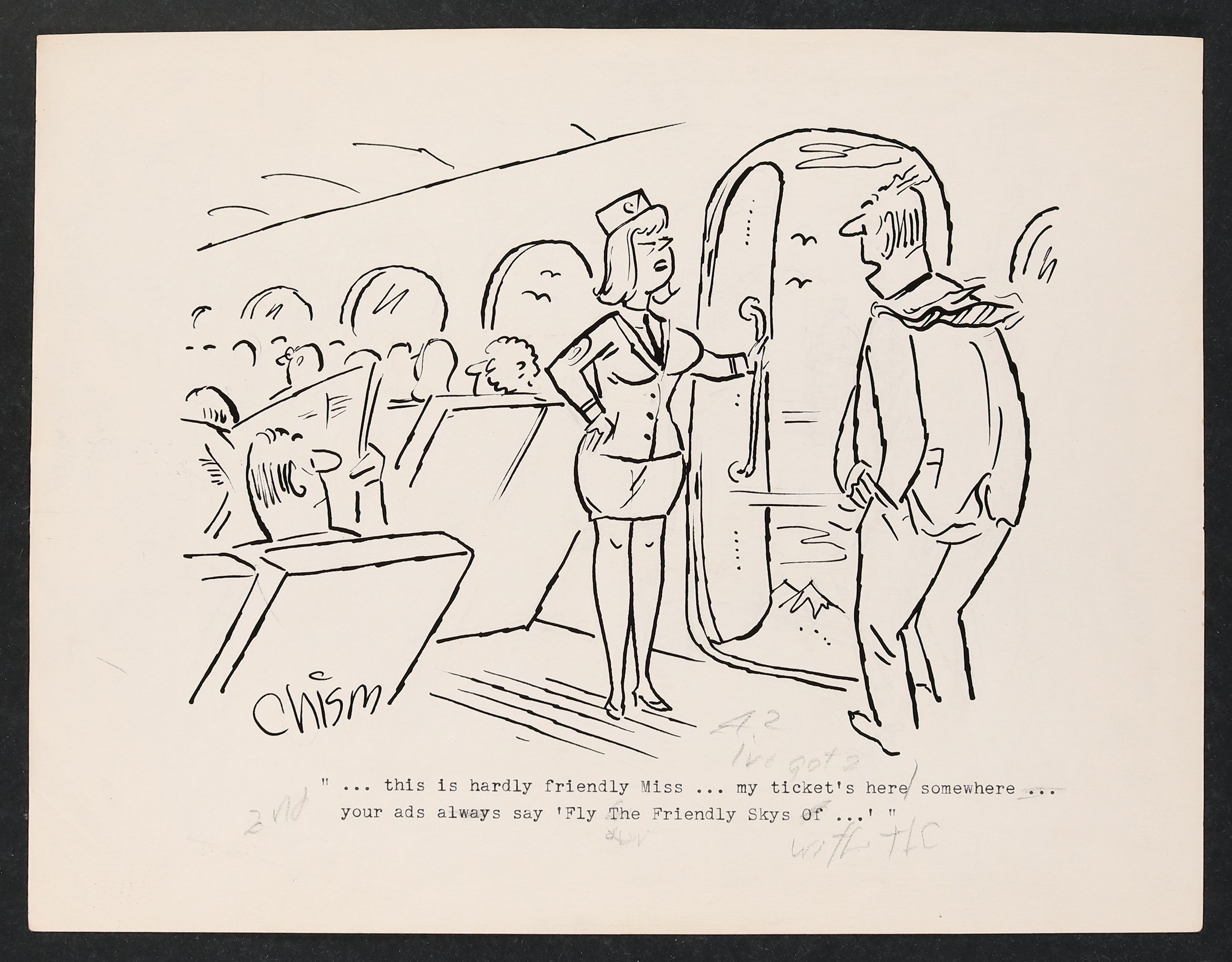 Chism was a prolific cartoonist, contributing mainly to Charlton's compilations including Good Humor and Cartoon Carnival. Signed by the artist. Pencil and ink on paper with a custom stamp from Chism on the reverse. 8 1/2" x 11"