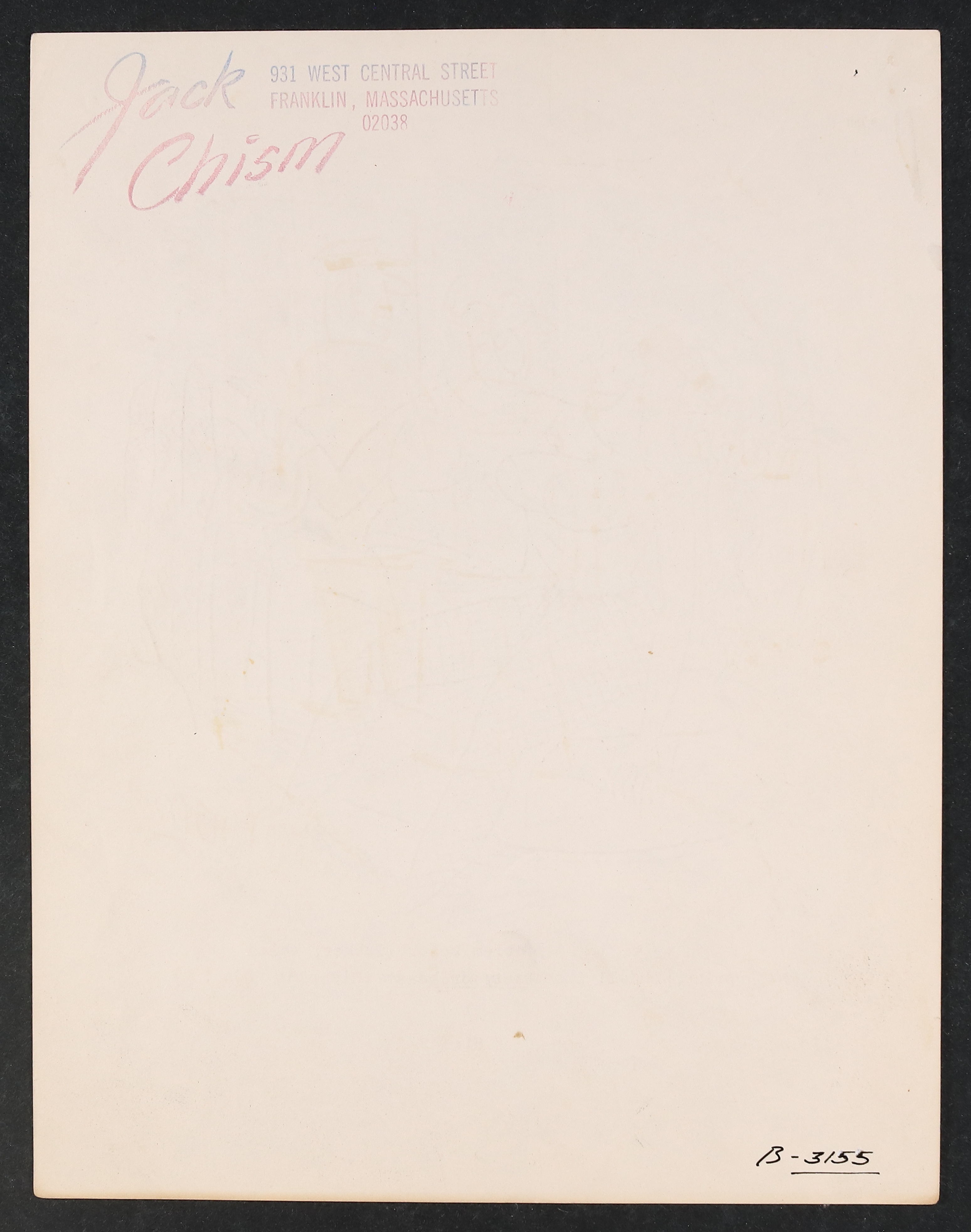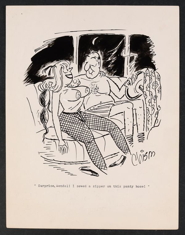 Chism was a prolific cartoonist, contributing mainly to Charlton's compilations including Good Humor and Cartoon Carnival. Signed by the artist. Pencil and ink on paper with a custom stamp from Chism on the reverse. 8 1/2" x 11"