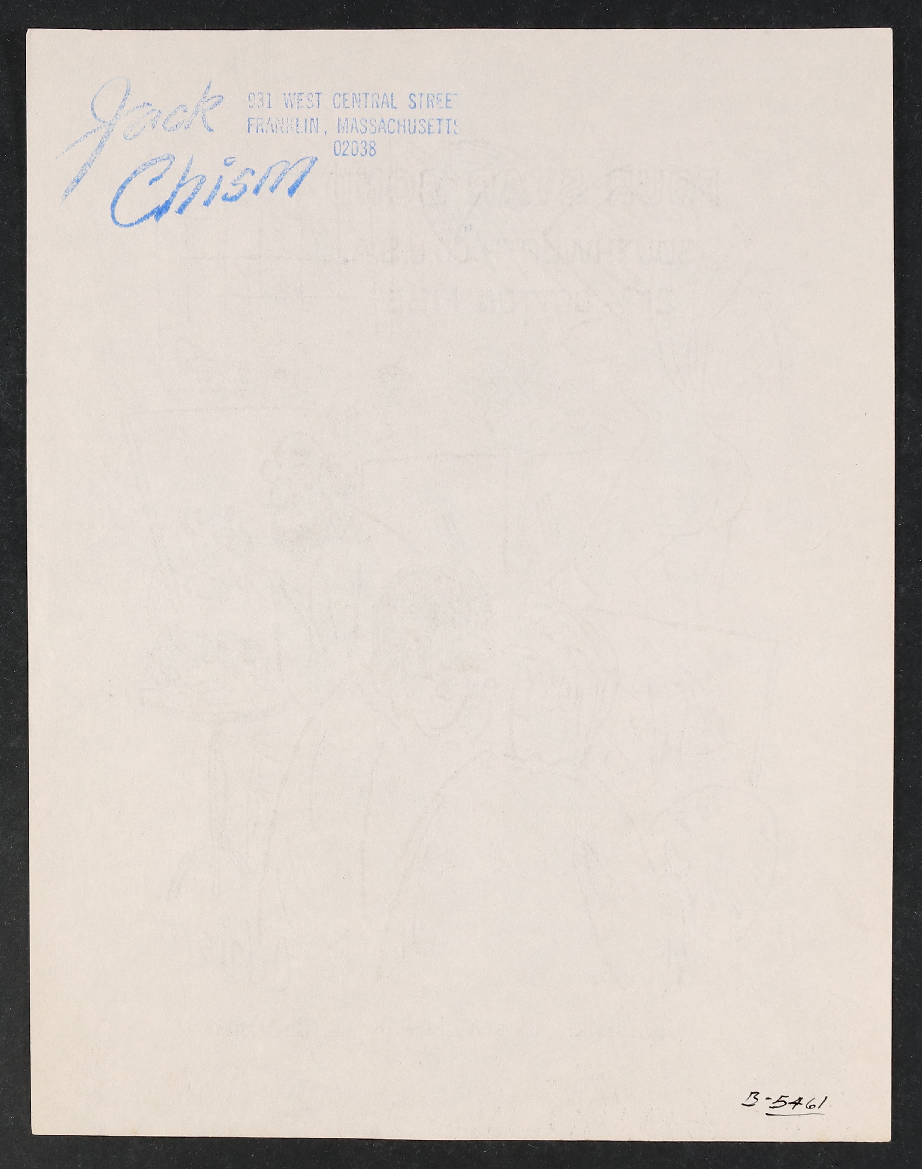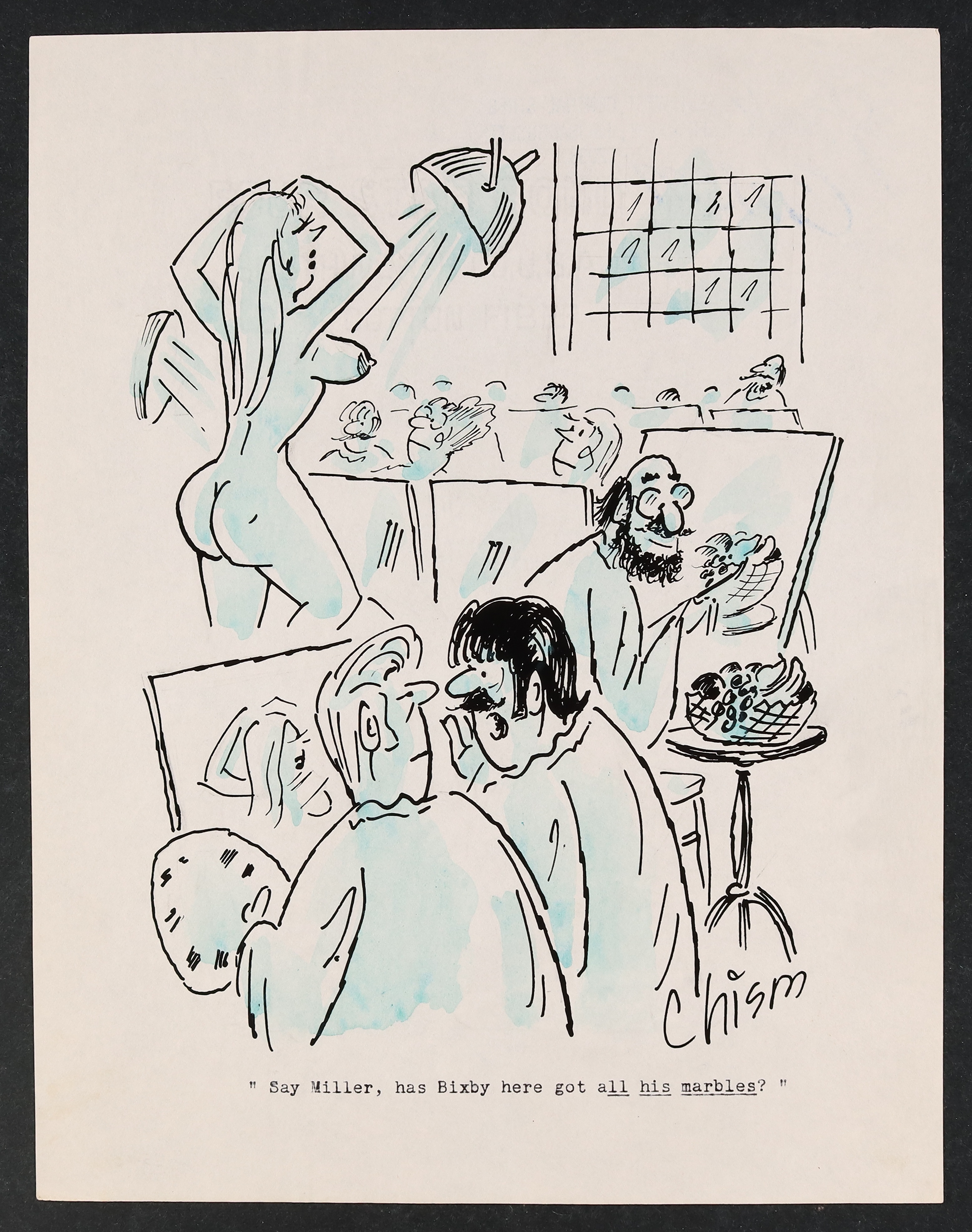 Chism was a prolific cartoonist, contributing mainly to Charlton's compilations including Good Humor and Cartoon Carnival. Signed by the artist. Pencil and ink with watercolor on paper with a custom stamp from Chism on the reverse. 8 1/2" x 11"