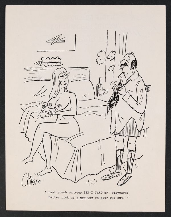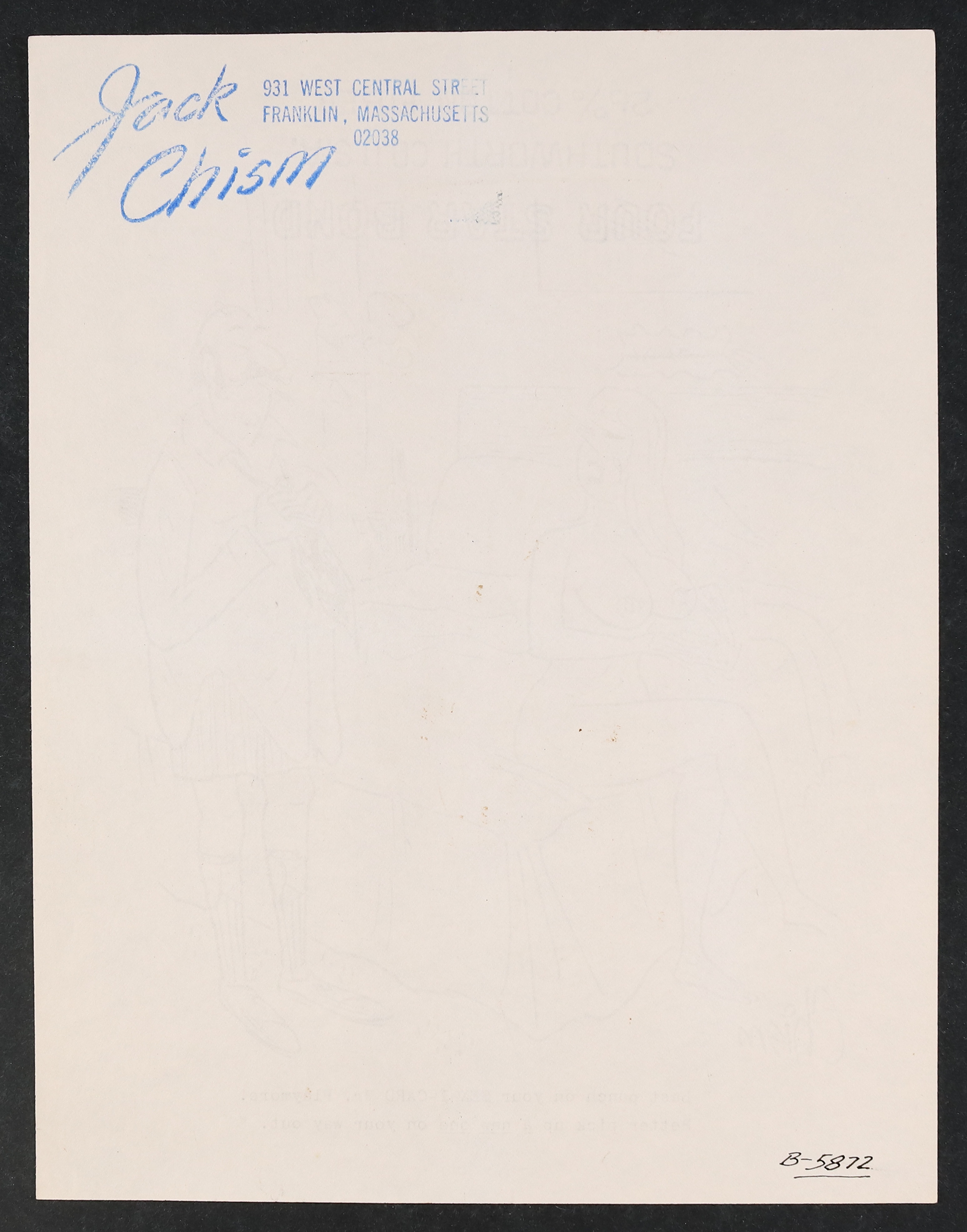 Chism was a prolific cartoonist, contributing mainly to Charlton's compilations including Good Humor and Cartoon Carnival. Signed by the artist. Pencil and ink on paper with a custom stamp from Chism on the reverse. 8 1/2" x 11"