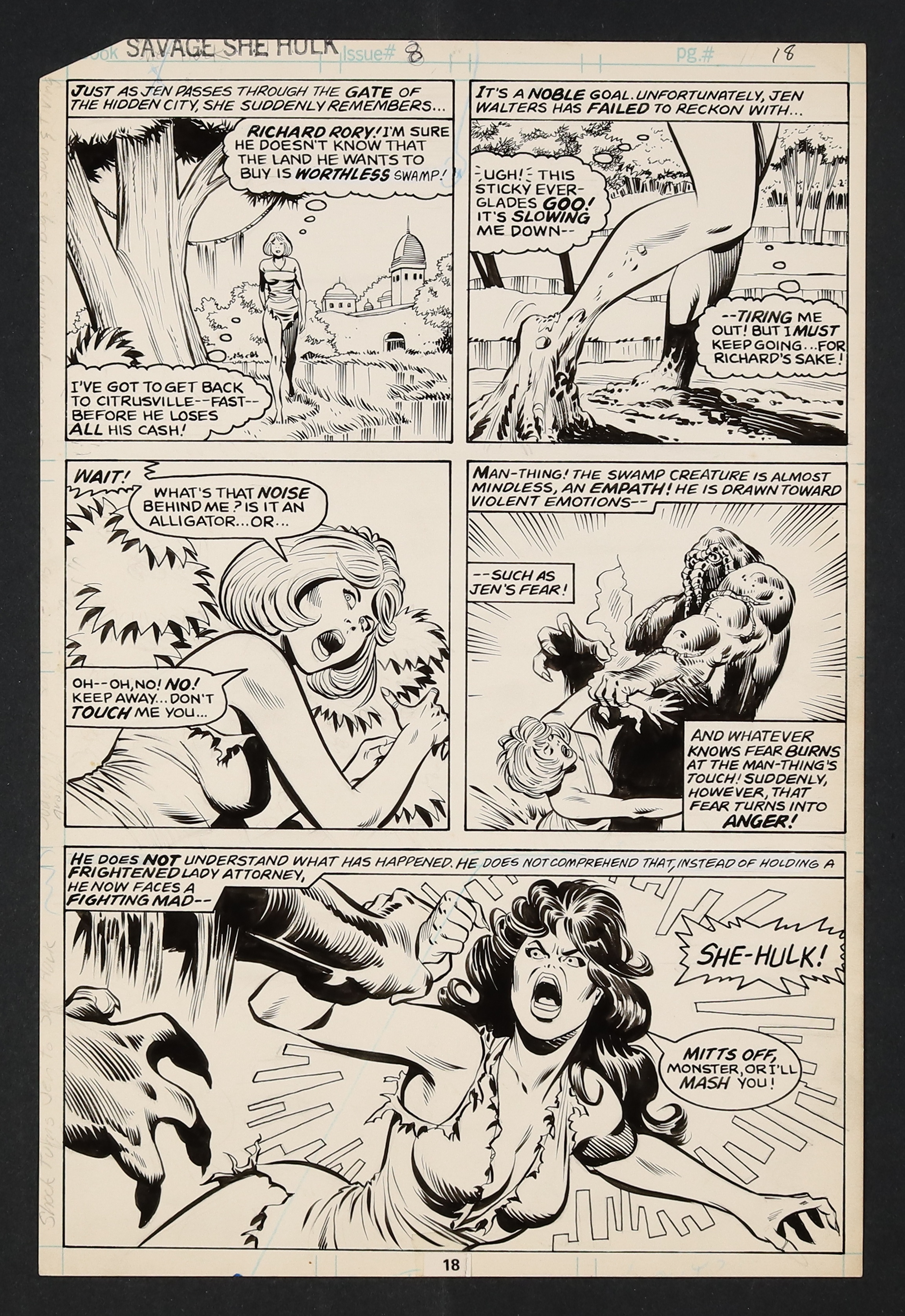 Original Art from Savage She-Hulk #8 (1980) Page 18 Breakdowns by Mike Vosburg, Finishes by Chic Stone