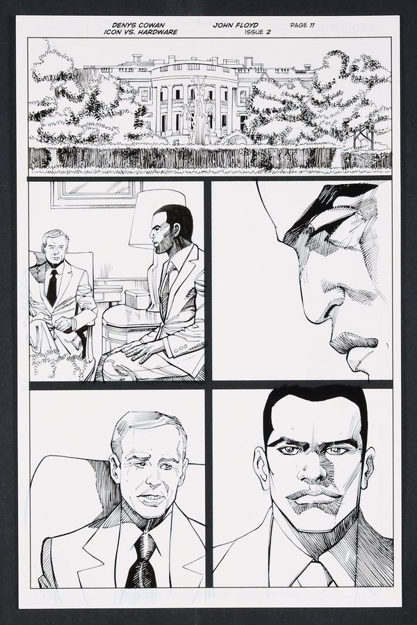 Original Art from Icon vs. Hardware #2 (2023) Page 11 Printed Pencils by Denys Cowan, Inks by John Floyd