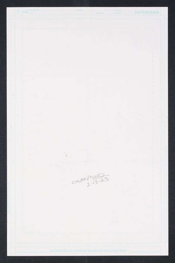 In a very tense meeting, Curtis Metcalf (Hardware) meets with the President of the United States at the White House- we'll leave it to readers to decide which, if any, real life president is being depicted here. In the meeting the President commands Curtis to begin manufacturing the "Q juice" for use in the military despite his concerns and threatens him with "the opposite of a pardon" if he refuses to comply. Ink over printed pencils on comic art board. 11" X 17".
