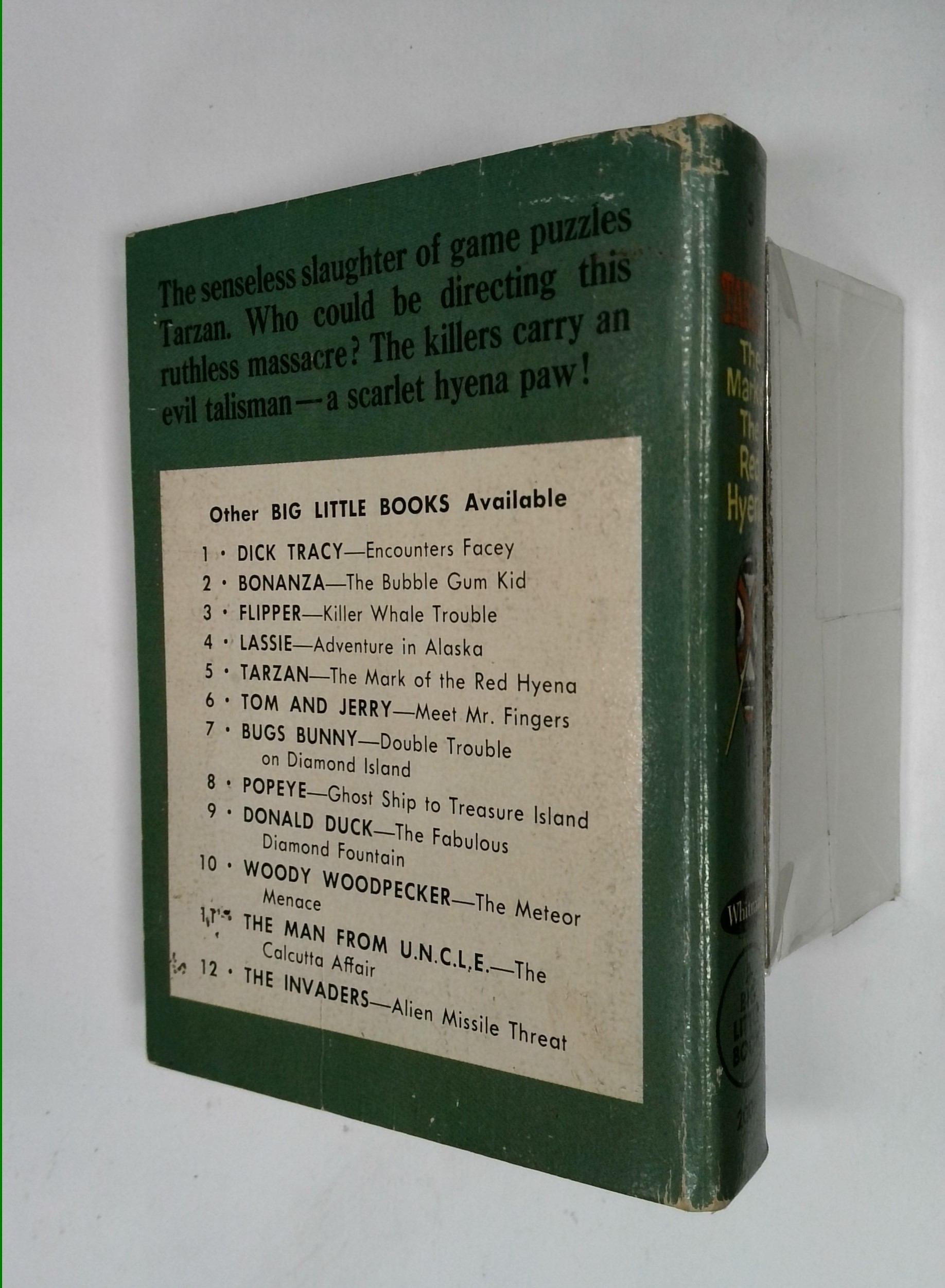 Tags: Big Little Books HC$5.00Tarzan the Mark of the Red Hyena (Big Little Book 1967) is a Big Little Book published by Western Publishing, Co. 250 pages, color pictures with text, 3.5-in. x 4.75-in., newsprint with hardcover, with $0.39 cover price. Cover price $0.39.