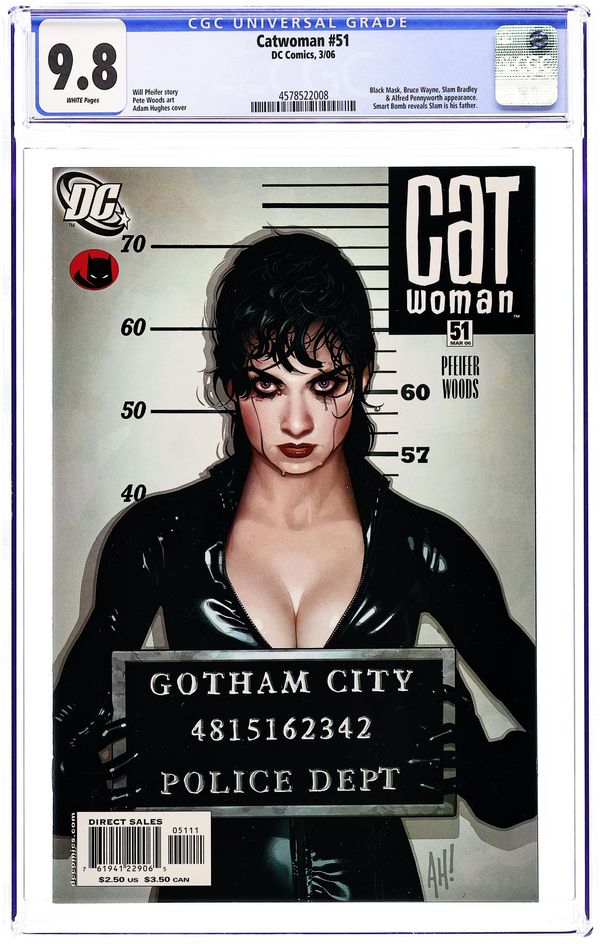 Written by Will Pfeifer Art by Pete Woods Cover by Adam Hughes. Fresh off the soul-rattling revelation from last issue, Selina is livid and looking for answers ? starting with none other than Batman! Her quest will bring her into conflict with the police, and at least two vehicles will be stolen in the process! Slam Bradley makes a fateful decision, while the Black Mask makes his big move against Catwoman, striking at the very heart of Selina's world in a way too terrible for words! On sale January 25 ? 32 pg, FC, $2.50 US Cover price $2.50.