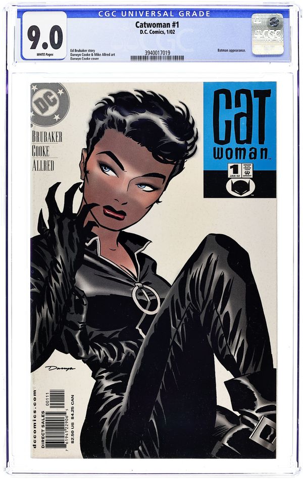 WRITTEN BY ED BRUBAKER; ART BY DARWYN COOKE AND MIKE ALLRED; COVER BY COOKE. Selina Kyle makes her triumphant return as Catwoman, in a stylish new ongoing series written by Ed Brubaker (BATMAN) and illustrated by Darwyn Cooke (BATMAN: EGO) and Mike Allred (Madman). A serial killer is racking up bodies in her old haunts, taking her back to a life she thought she'd left behind permanently. Cover price $2.50.