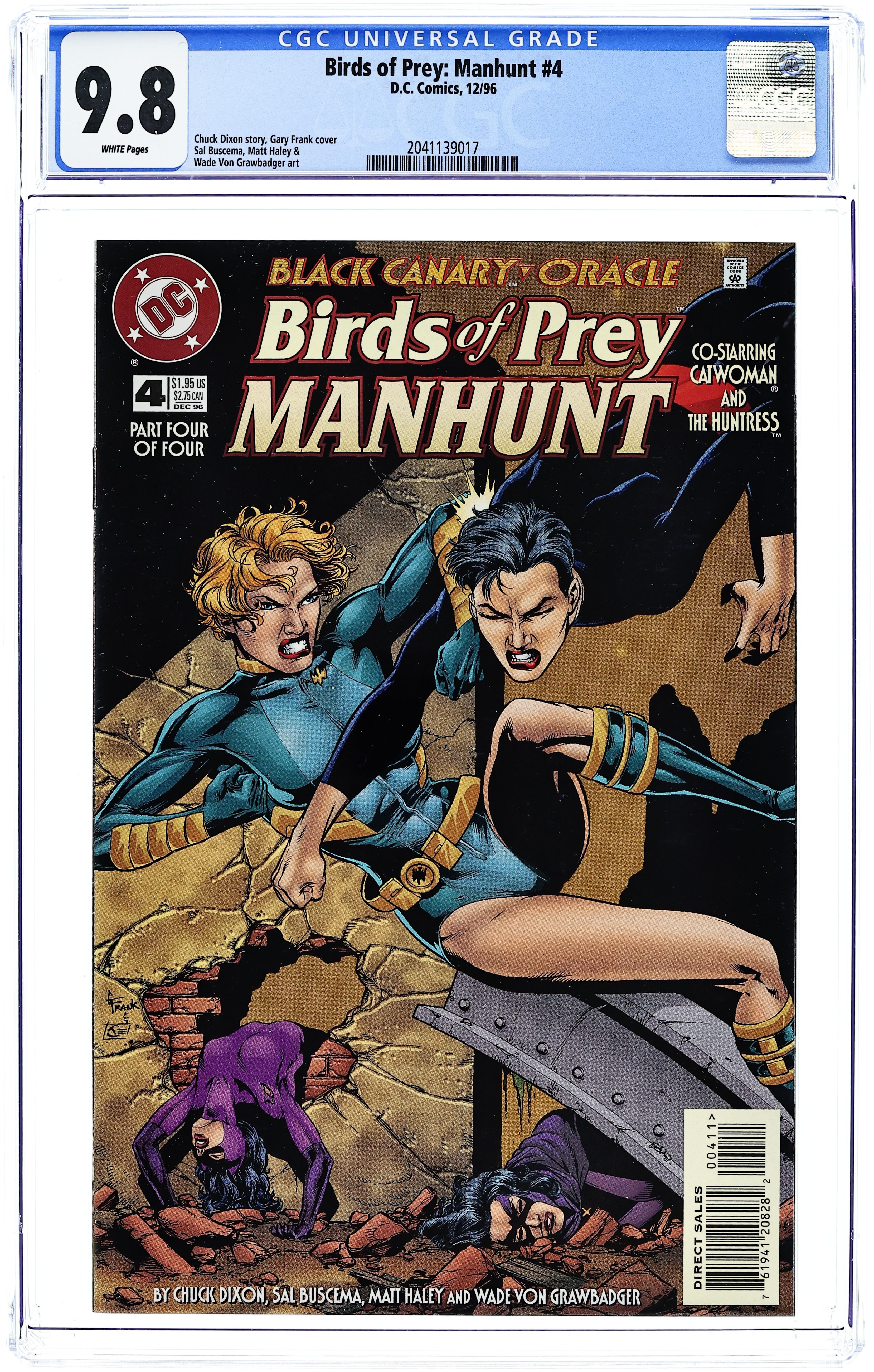 A new partnership is born as Oracle and Black Canary, two haunted and driven women, join forces against a murderous ecoterrorist and become a fighting machine unlike any other--hawks in the hunt for justice, swooping down on criminals with the stealth, speed and cunning of true predators. This double-size one-shot is written by Chuck Dixon, with art by Gary Frank and John Dell. FC, 64 pg. Cover price $3.95.