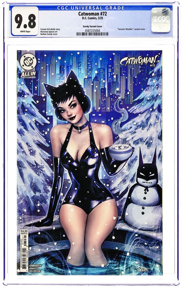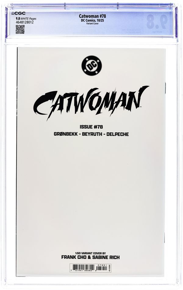 KRS Comics exclusive variant by Natali Sanders. Written by Paul Dini, Ann Nocenti, Tom King, Jeff Parker, Liam Sharp, Mindy Newell, Chuck Dixon, Will Pfeifer, Ram V and Ed Brubaker. Art by Emanuela Lupacchino, Robson Rocha, Mikel Janin, Jonathan Case, Liam Sharp, Lee Garbett, Kelley Jones, Pia Guerra, Fernando Blanco, Cameron Stewart, Mick Gray, Daniel Henriques and Danny Miki. Our gal Catwoman is turning 80 next year (and looking very good, if we meow say), and DC is celebrating with nothing less than a huge soiree, invite only, packed with creators who mean the most to her and to whom she means the most! Stories featured in this 100-page spectacular include a tail -- sorry, tale -- that takes place at the end of the Brubaker/Stewart Catwoman run, in honor of artist Darwyn Cooke. Also, Catwoman is caught by an exotic cat collector, runs into a wannabe thief trying to prove himself as her apprentice, encounters a mystery involving memorabilia from alternate continuities, and of course some Bat/Cat fun. Featuring: "Skin the Cat" by Paul Dini, Emanuela Lupacchino and Mick Gray; "Now You See Me" by Ann Nocenti, Robson Rocha and Daniel Henriques; "Helena" by Tom King and Mikel Janin; "The Catwoman of Earth" by Jeff Parker and Jonathan Case; "A Cat of Nine Tales" by Liam Sharp; "Little Bird" by Mindy Newell and Lee Garbett; "Born to Kiln" by Chuck Dixon, Kelley Jones and Danny Miki; "Conventional Wisdom" by Will Pfeifer and Pia Guerra; "Addicted to Trouble" by Ram V and Fernando Blanco; and "The Art of Picking a Lock" by Ed Brubaker and Cameron Stewart. Plus pin-ups by Babs Tarr, Ty Templeton, Steve Rude, Tula Lotay, Tim Sale, Jim Balent and Jae Lee. 96 pages, full color. Rated T+