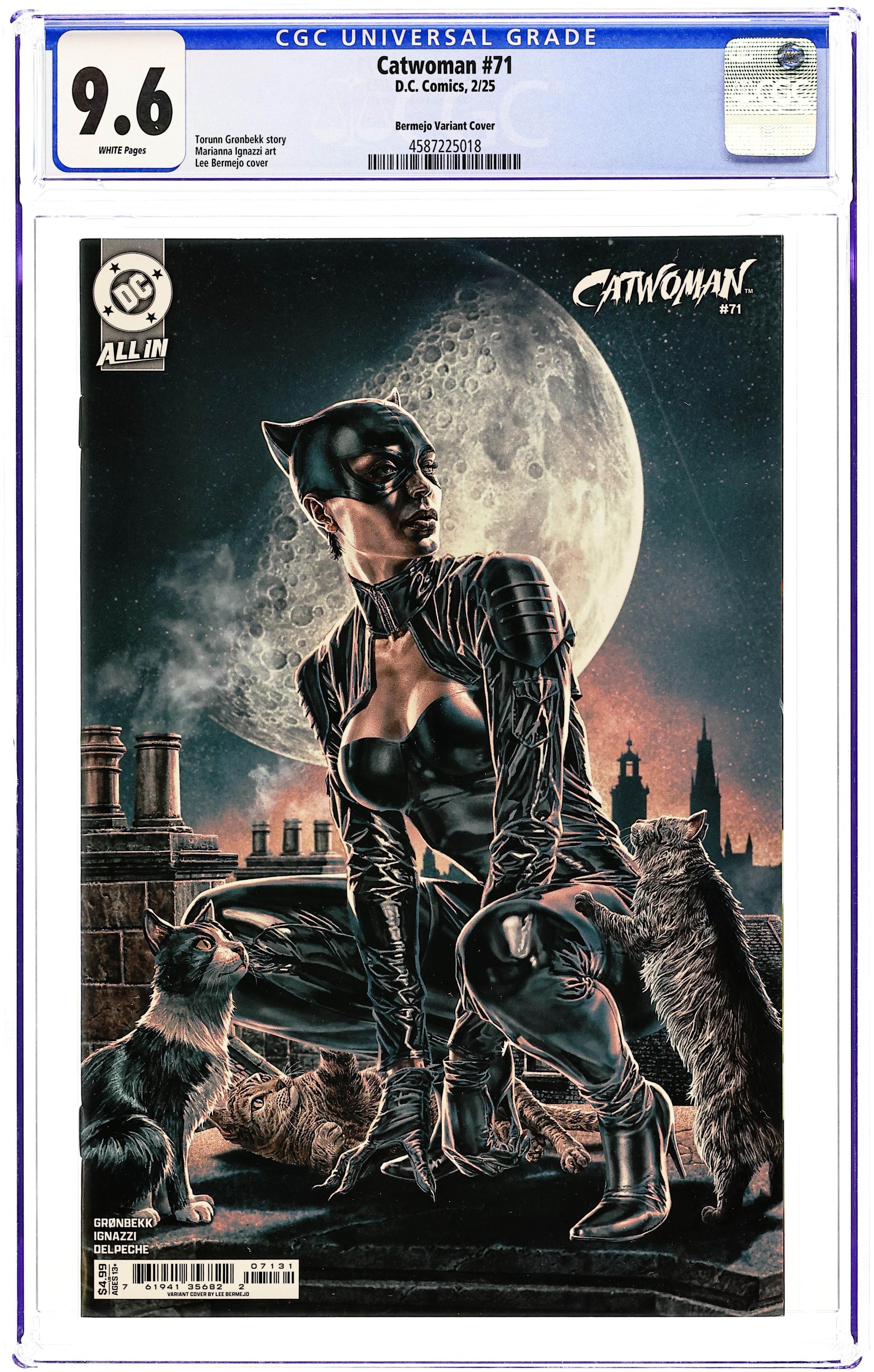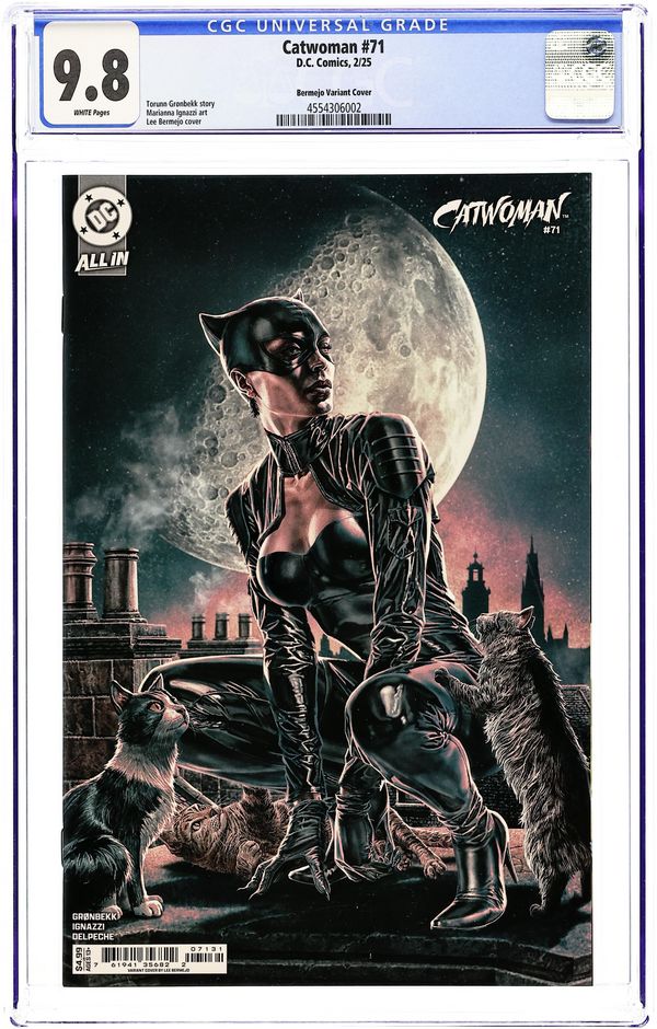 Written by Torunn Gronbekk. Art by Marianna Ignazzi. Cover by Lee Bermejo. WHAT'S ONE CATWOMAN BETWEEN GOOD FRIENDS? Selina's international hunt brings her to Stockholm in search of an old acquaintance who has become a crime lord there... Of course, she's pretty sure he might be the one who's put a price on her head, so she's going to need to sneak in if she wants to get answers. Luckily for this cat, there's a fancy-dress party that's the perfect opportunity to slink in unnoticed. 32 pages, full color. Rated T+ Cover price $4.99.