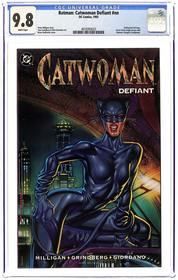 1st Printing. In this one-shot story, Catwoman is used as a pawn in a trap to capture a Gotham City crime boss, forcing Batman to save 'the beauty' before she is destroyed by the Beast. Written by Peter Milligan, with art by Tom Grindberg and Dick Giordano, and colors by Steve Oliff. Painted cover by Brian Stelfreeze, designed to interconnect with the cover of Penguin Triumphant (1992) #1. 52 pages. Prestige Format. Cover price $4.95.