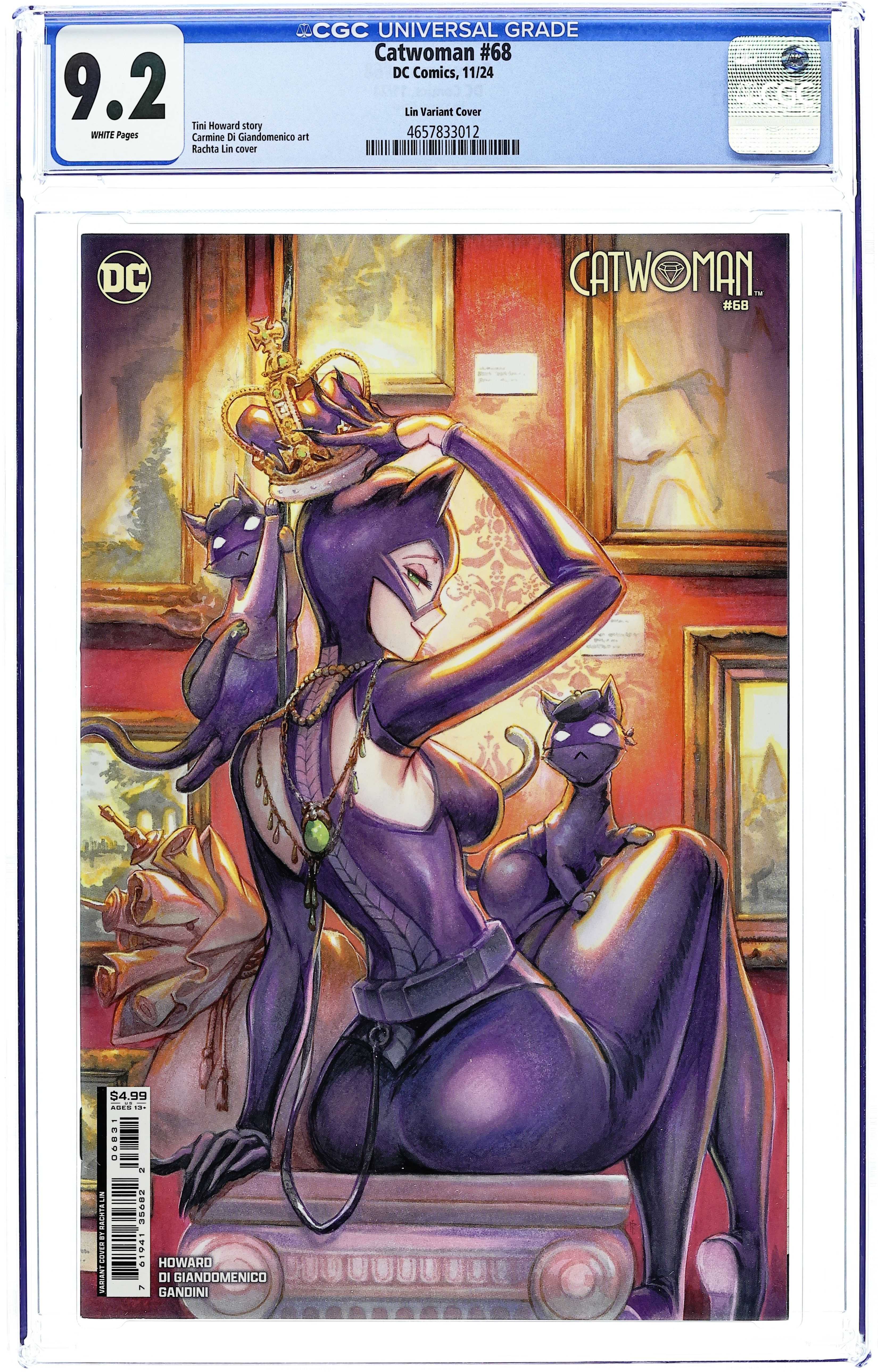 Starts Dec 22 Written by Tini Howard. Art by Carmine Di Giandomenico. Cover by Rachta Lin. THE CAN'T-MISS FINALE TO TINI HOWARD'S RUN, DRAWN BY ALL-STAR CARMINE DI GIANDOMENICO! As the forces of the WHITE GLOVE prepare to put Gotham City in a stranglehold, Selina finds herself in need of emergency medical treatment from the steady hands of none other than HUSH. Will the Feline Fatale survive her procedure and live to protect her beloved precious city...or will she be reduced to fish food at the bottom of the Gotham City bay? 32 pages, full color. Rated T+ Cover price $4.99.