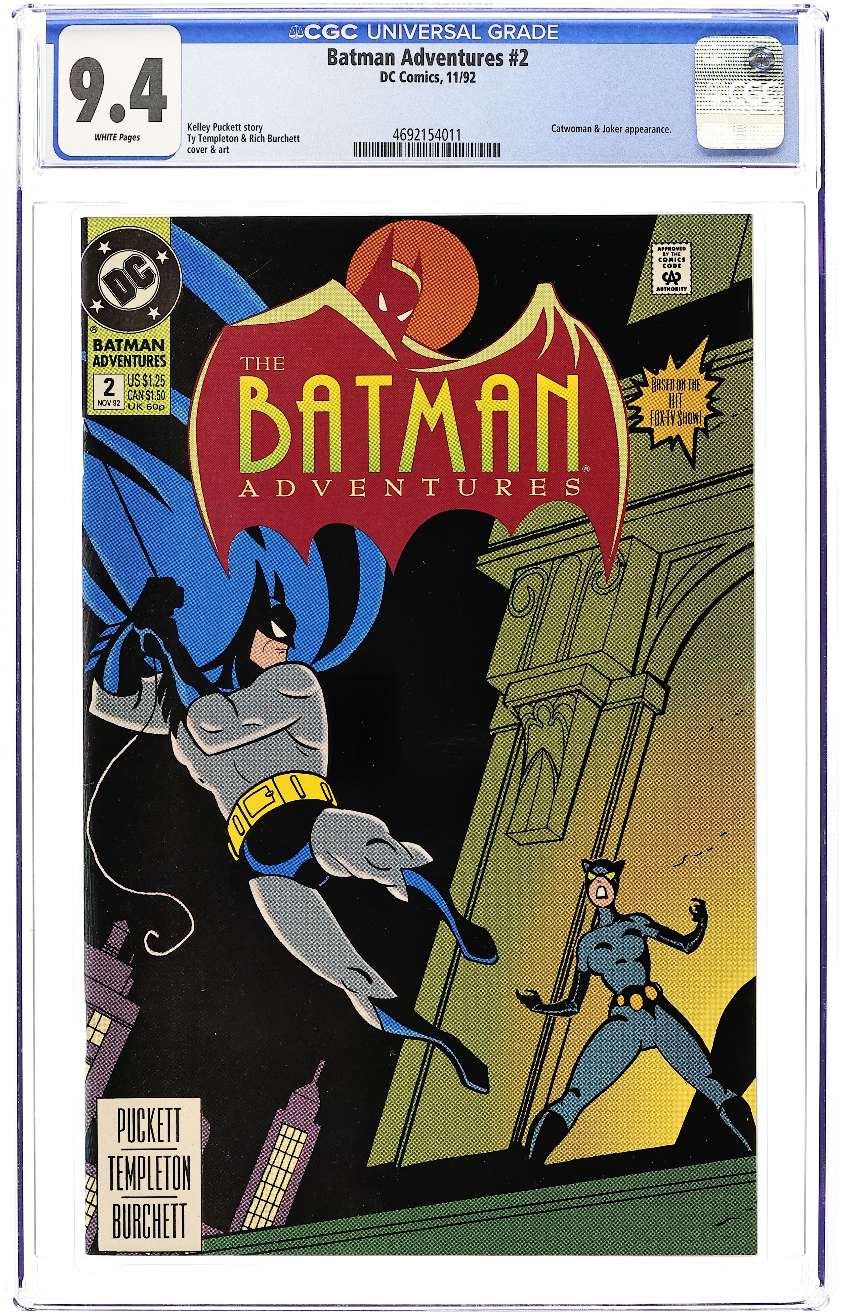 "Catwoman's Killer Caper." The Joker enlists Catwoman's help in stealing the crown jewels of England. Based on Batman The Animated Series. Script by Kelly Puckett, pencils by Ty Templeton, inks by Rick Burchett. Cover by Templeton. Cover price $1.25.