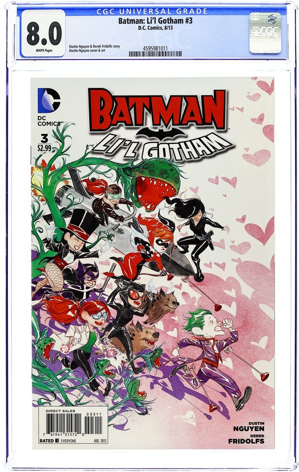 (W) Dustin Nguyen, Derek Fridolfs (A/CA) Dustin Nguyen It's Valentine's Day in Gotham City, and The Joker's having a rough time. Not only does he hate the holiday, but when his plan to ruin it for everyone else backfires, he becomes the target of many fan-favorite females' affections! And in the second story, set against the backdrop of Gotham City's Lunar New Year celebrations, Damian and Katana team up to take down some thieves. But when they get captured, can some 'old' allies save them? Cover price $2.99.