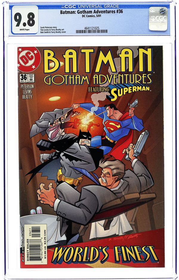 WRITTEN BY SCOTT PETERSON;ART BY TIM LEVINS AND TERRY BEATTY;COVER BY BOB SMITH AND BEATTY. Guest-starring Superman! The Man of Steel is tracking down a Metropolis mobster who's hiding out in Gotham, but he needs the help of Gotham's hometown hero on his search! Besides, only Batman knows where to get the best Italian food in Gotham at 4 a.m.! FC, 32 PG. Cover price $1.99.