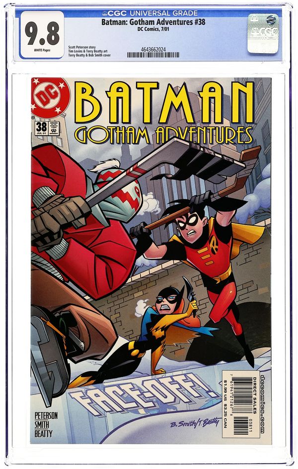 WRITTEN BY SCOTT PETERSON;ART AND COVER BY BOB SMITH AND TERRY BEATTY. Robin and Batgirl track down a ski-masked criminal who is targeting middle-aged males and sending them to the hospital. But what connection does this have to little-league hockey games? FC, 32 PG. Cover price $1.99.