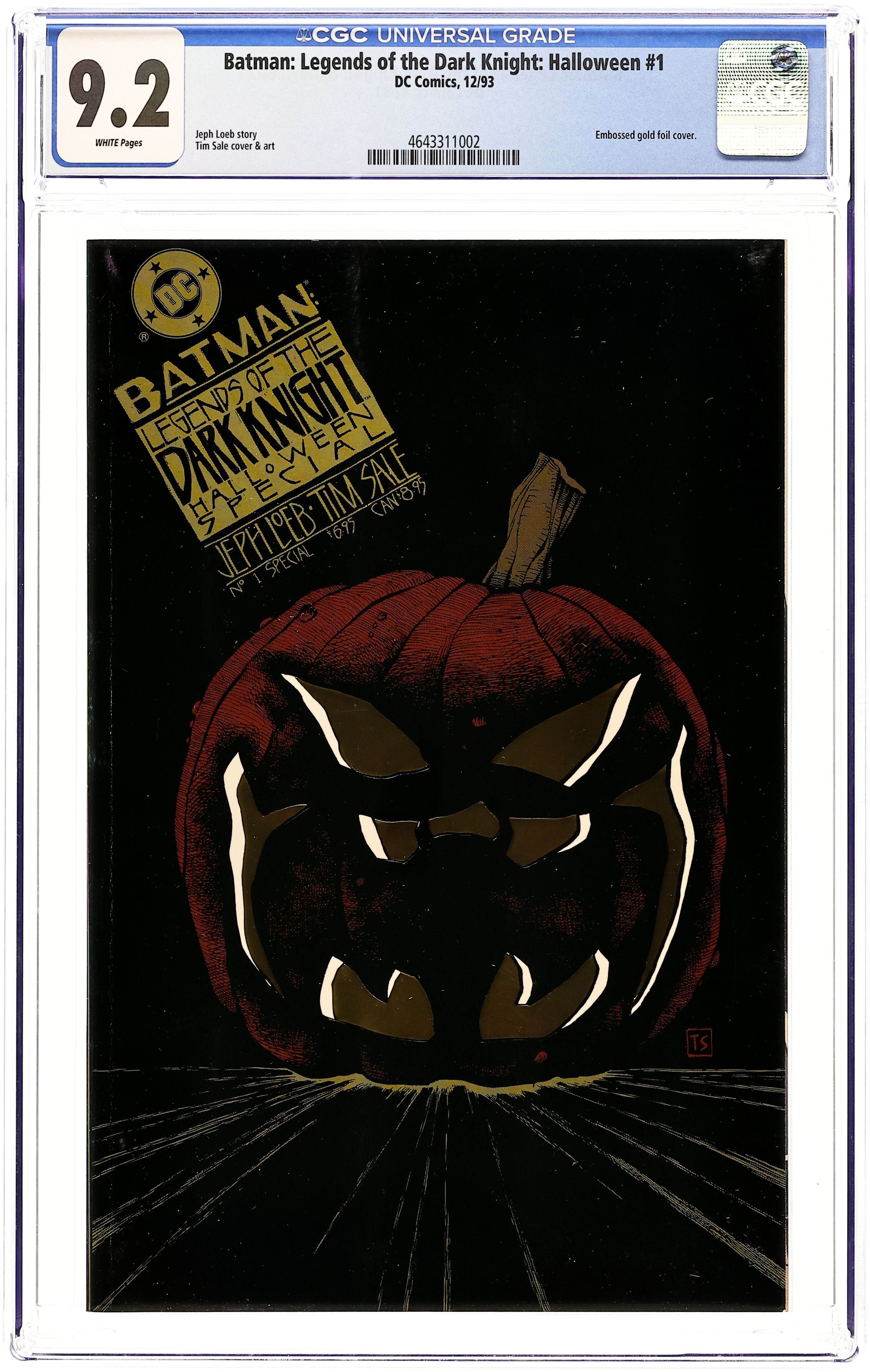 Foil Cover. Written by Jeph Loeb. Art by Tim Sale. Cover by Tim Sale. HALLOWEEN IN GOTHAM--WHAT COULD POSSIBLY GO WRONG?! It's Halloween weekend in Gotham City, and the Scarecrow and his men have been making a killing, looting Gotham and spreading fear. Just as an exhausted Caped Crusader prepares to put an end to this reign of terror, he is unexpectedly sidelined by a most beautiful--and beguiling--new acquaintance... 76 pages, PC/B&W. Rated T+ Cover price $8.99.