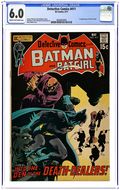Cover by Neal Adams. "Freak-Out at Phantom Hollow!," script by Frank Robbins, pencils by Bob Brown, inks by Dick Giordano and Steve Englehart (backgrounds); In Phantom Hollow, Batman tries to unravel the mystery of a witchs curse that may be destroying the entire town. "Squeeze-Play!", script by Frank Robbins, art by Don Heck; Continuing from last issue... Batgirl has stumbled upon a plot by wig designer Vazly, using wigs that would crush the heads of his victims if they refused to pay him large sums of money to stop the crushings; Confronting them, Batgirl is caught off guard and has a wig slapped on her head, however, it's the one that was given to Barbara Gordon (Batgirl's alter ego) and Batgirl had already disarmed it. 36 pgs., full color. $0.15. Cover price $0.15.