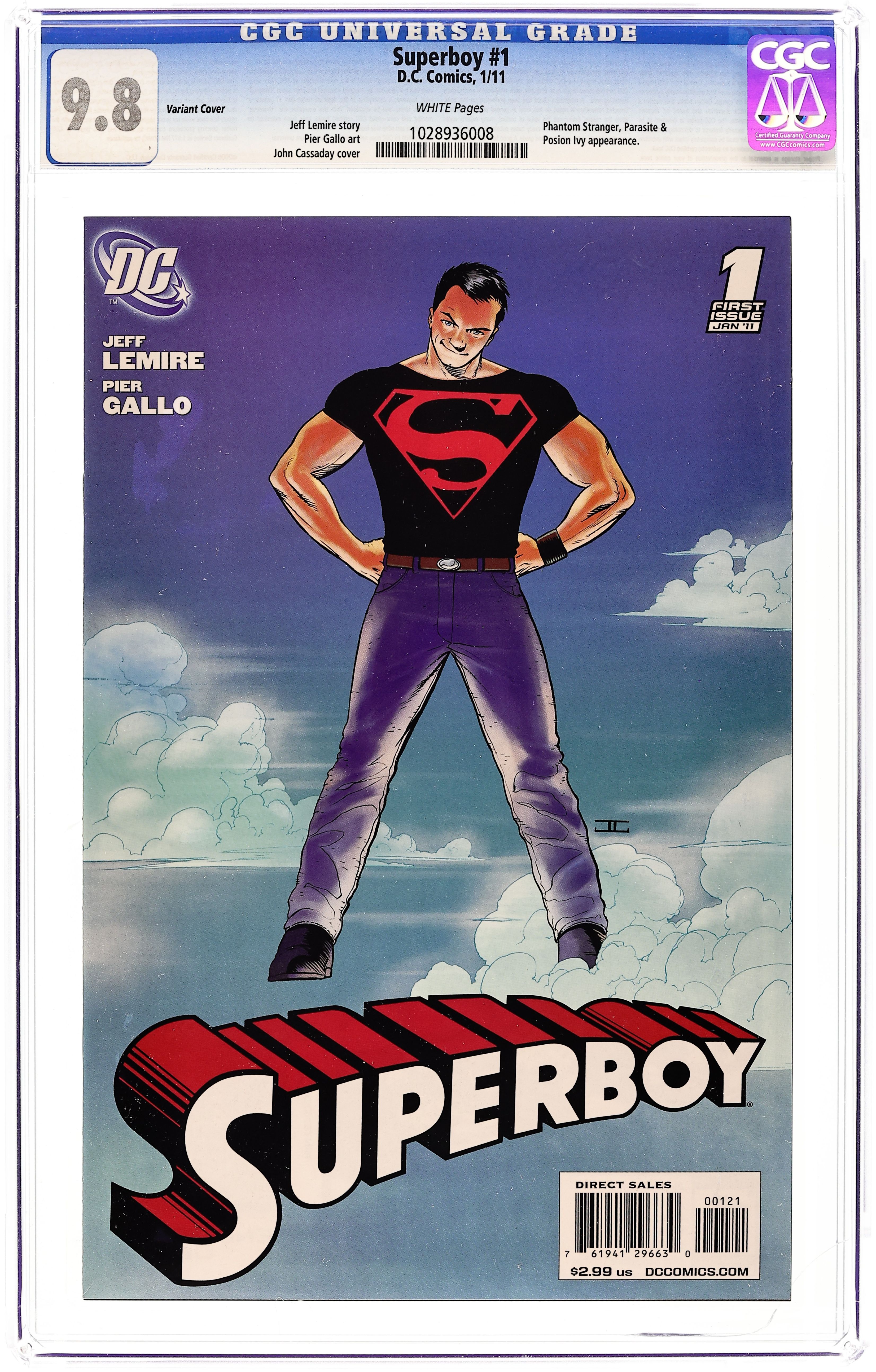Limited 1 for 10 Variant cover by JOHN CASSADAY Smallville Attacks: Part 1 - Written by JEFF LEMIRE Art by PIER GALLO Superboy is back in a brand-new ongoing series! Join Jeff Lemire (SWEET TOOTH) and amazing up-and-coming artist Pier Gallo as they take Superboy on a journey to a side of Smallville not even Superman knows about! What mysteries lurk beneath the surface of this all-American town - and what are their direct ties to Superboy? The start of the next great DC Universe epic begins right here! Cover price $2.99.