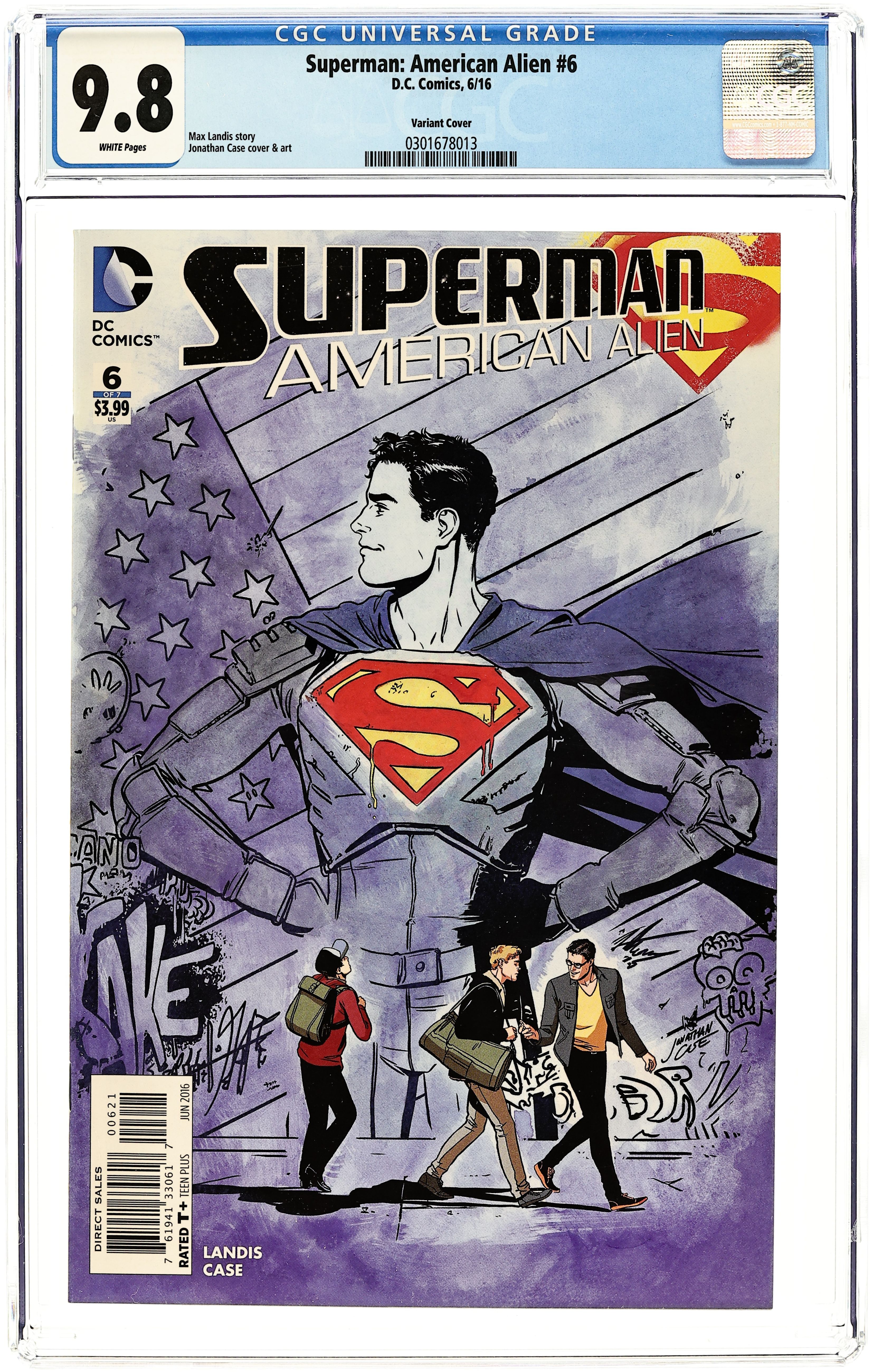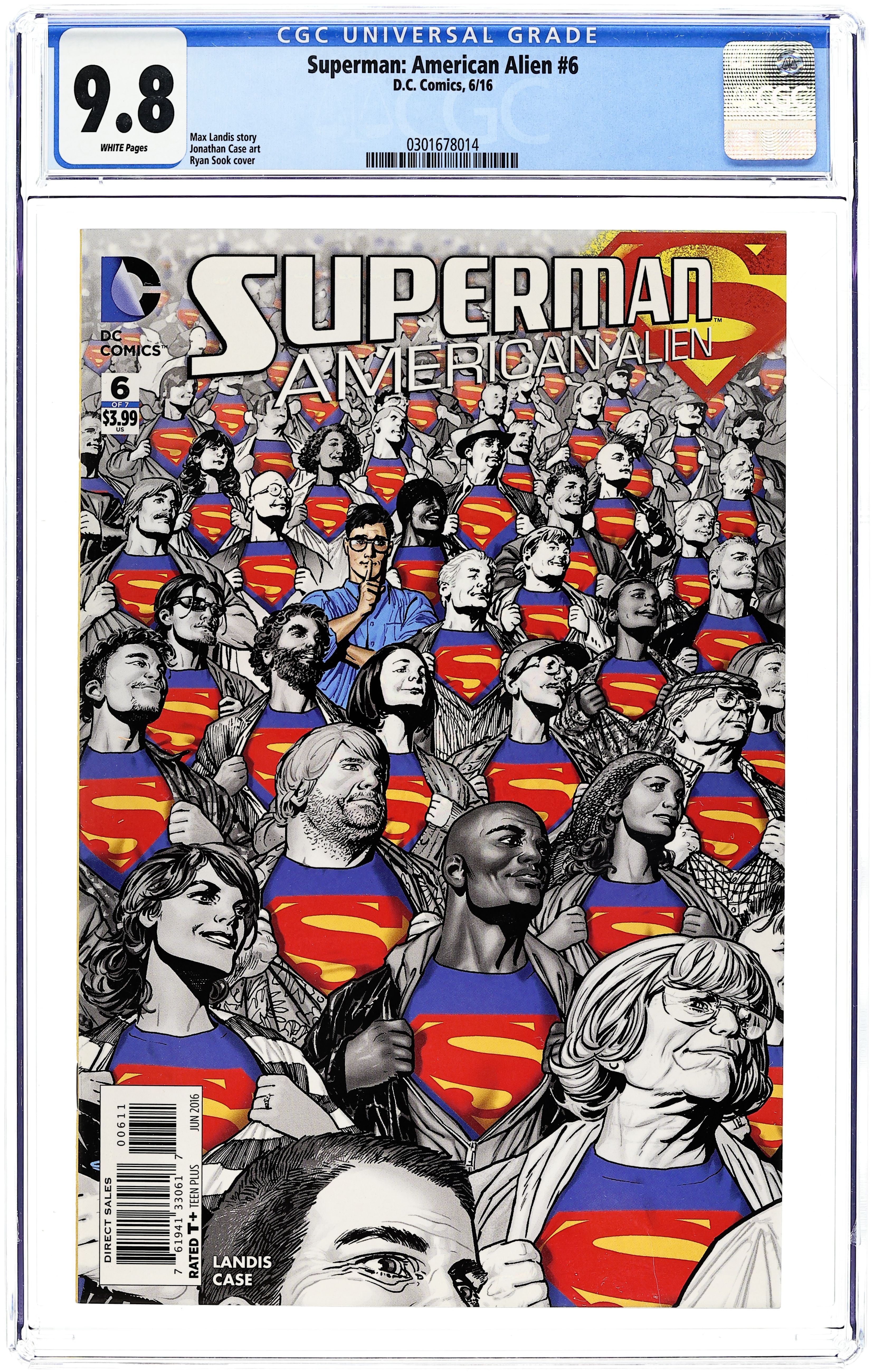 Limited 1 for 25 Retailer Incentive Variant Cover. Written by Max Landis. Art and Cover by Jonathan Case. Pete Ross and Kenny Braverman take a trip to Metropolis to catch up with their old friend Clark Kent, only to find that the 'Superman' phenomenon has taken the city by storm! As Clark's alter ego grows more famous, so do Pete's concerns, and the rising tensions between the two friends inadvertently result in an epic encounter of an extraterrestrial nature! 32 pages, full color. Rated T+ Cover price $3.99.