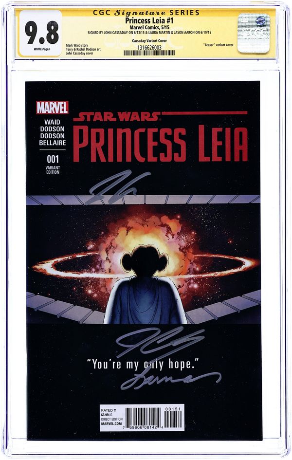 Dynamic Forces Variant. Limited to 5000 copies. Includes DF certificate of authenticity. Cover by Greg Land. Written by Mark Waid. Art by Terry Dodson. When Princess Leia Organa was captured by the Empire as a Rebel spy, she never betrayed her convictions, even in the face of the complete destruction of her home world, Alderaan. When her rescue came, she grabbed a blaster and joined the fight, escaping back to the Rebel Alliance and helping strike the biggest blow against the Empire - the destruction of the Death Star. But in the aftermath of that victory, the question remains...what is a princess without a world? 6.75" x 10.25", 28 pages, FC.