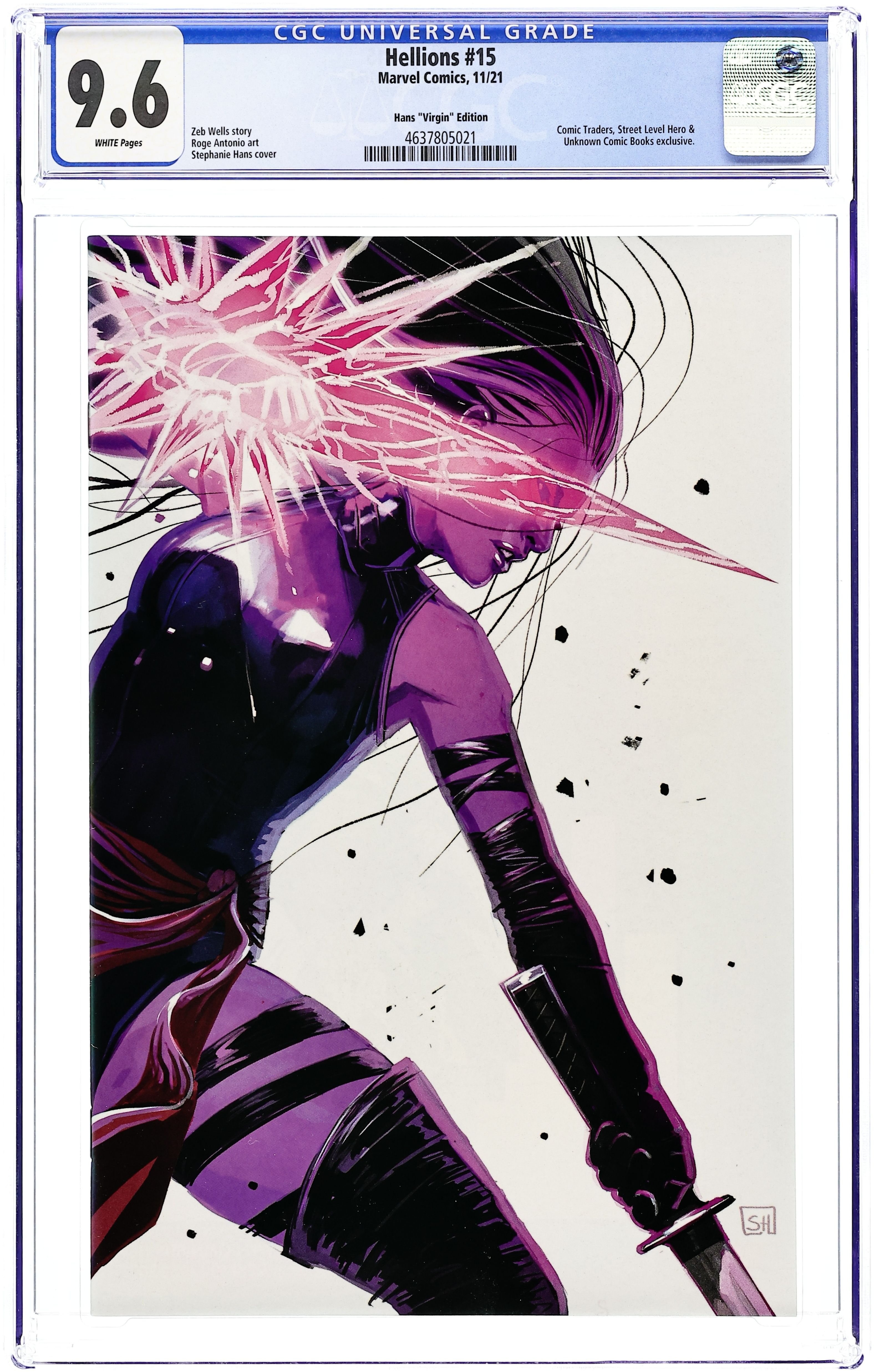 Comics Illuminati (Unknown Comics, Street Level Hero, and Comic Traders) Exclusive Virgin Cover by Stephanie Hans. Written by Zeb Wells. Art by Roge Antonia. SINISTER SECRETS! PSYLOCKE's secret deal with MR. SINISTER will cause a schism within the HELLIONS! Also, TARN THE UNCARING wants his stuff back! 28 pages, full color. Parental Advisory