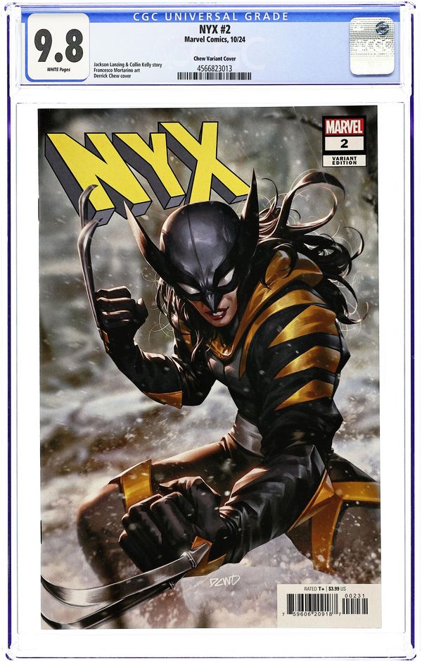 Comic Mint variant cover by Gerald Parel. Written by Jonathan Hickman. Art by R. B. Silva. FEAR THE FUTURE! Superstar writer Jonathan Hickman (INFINTY, NEW AVENGERS, FF) continues his revolutionary new direction for the X-Men. Intertwining with HOUSE OF X, POWERS OF X reveals the secret past, present and future of mutantkind, changing the way you look at every X-Men story before and after. You do not want to miss the next seminal moment in the history of the X-Men! 56 pages, full color. Rated T+ Cover price $5.99.