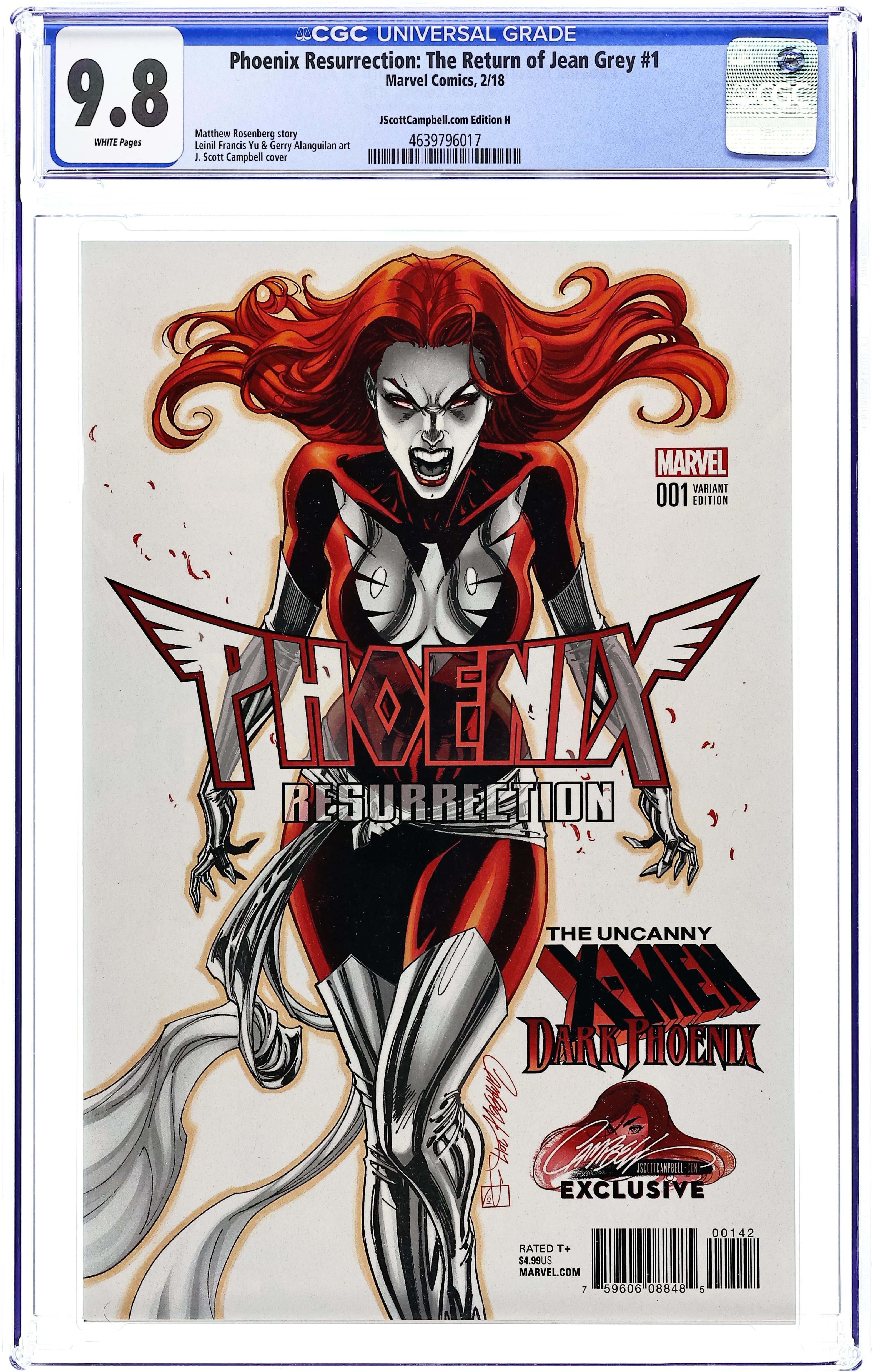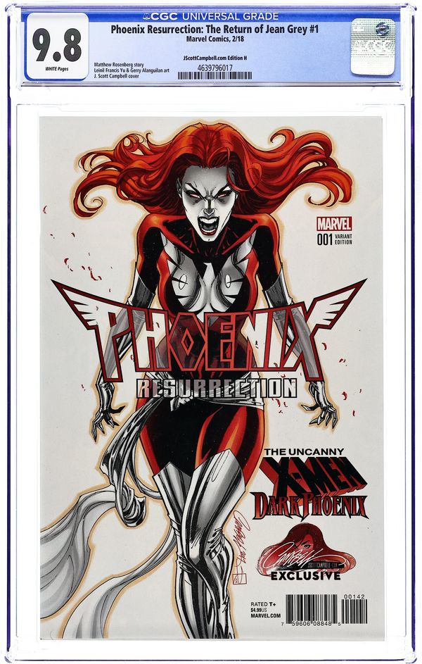 JScottCampbell.Com Exclusive "Dark Phoenix" Variant Cover by J. Scott Campbell. Written by Matthew Rosenberg. Art by Leinil Francis Yu. She will return, like a Phoenix from the ashes. Years ago, Jean Grey died and the X-Men mourned her. Since then, the world has changed, her teammates have lived without her and died without her. And now, when strange events start happening all over the world, those teammates can only come to one conclusion - the one true Jean Grey is back! 36 pages, full color. Rated T+