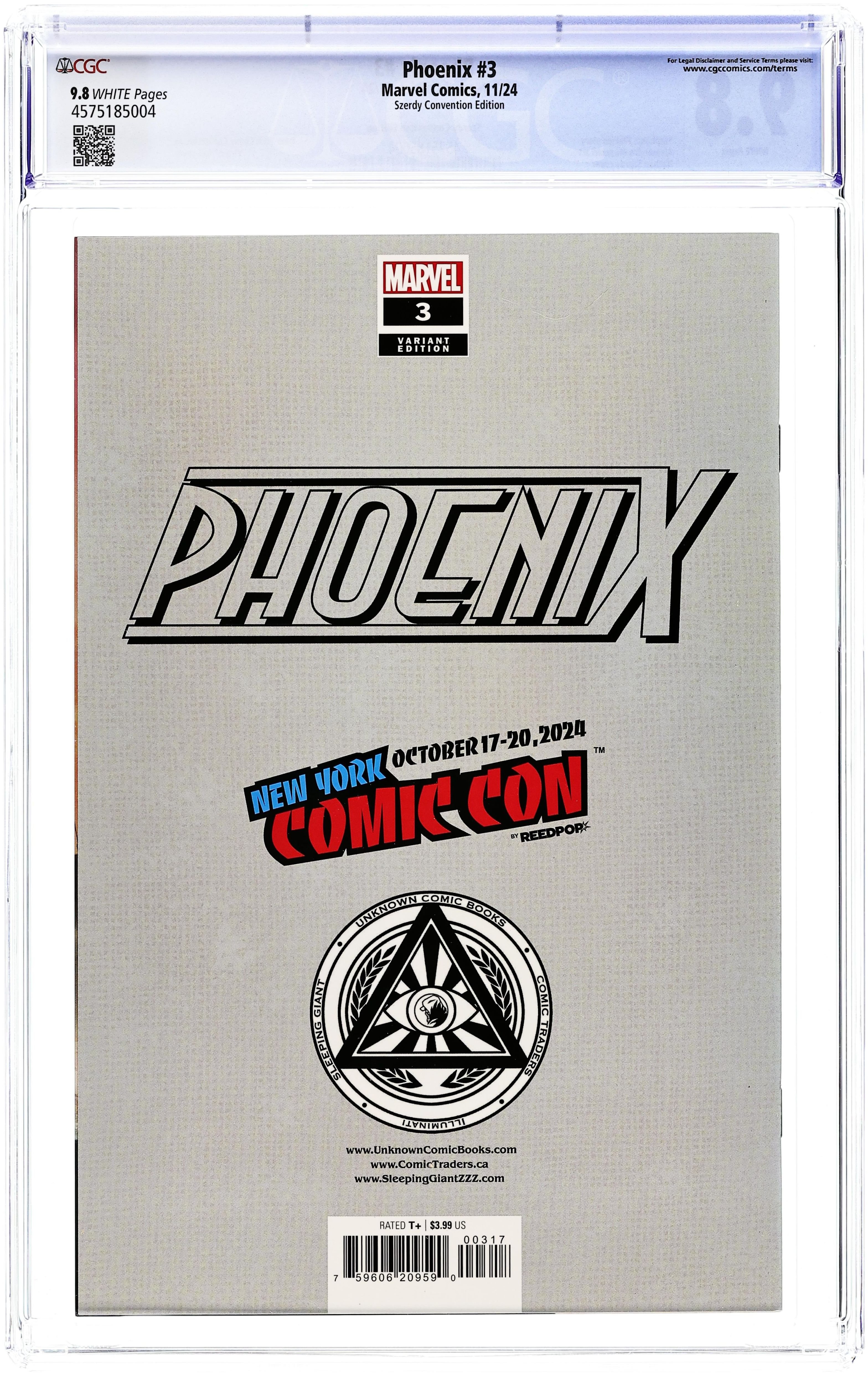 Unknown Comics and Boom Comic Cards and More Exclusive Variant cover by Terry Dodson. Written by Matthew Rosenberg. Art by Leinil Francis Yu. She will return, like a Phoenix from the ashes. Years ago, Jean Grey died and the X-Men mourned her. Since then, the world has changed, her teammates have lived without her and died without her. And now, when strange events start happening all over the world, those teammates can only come to one conclusion - the one true Jean Grey is back! 36 pages, full color. Rated T+
