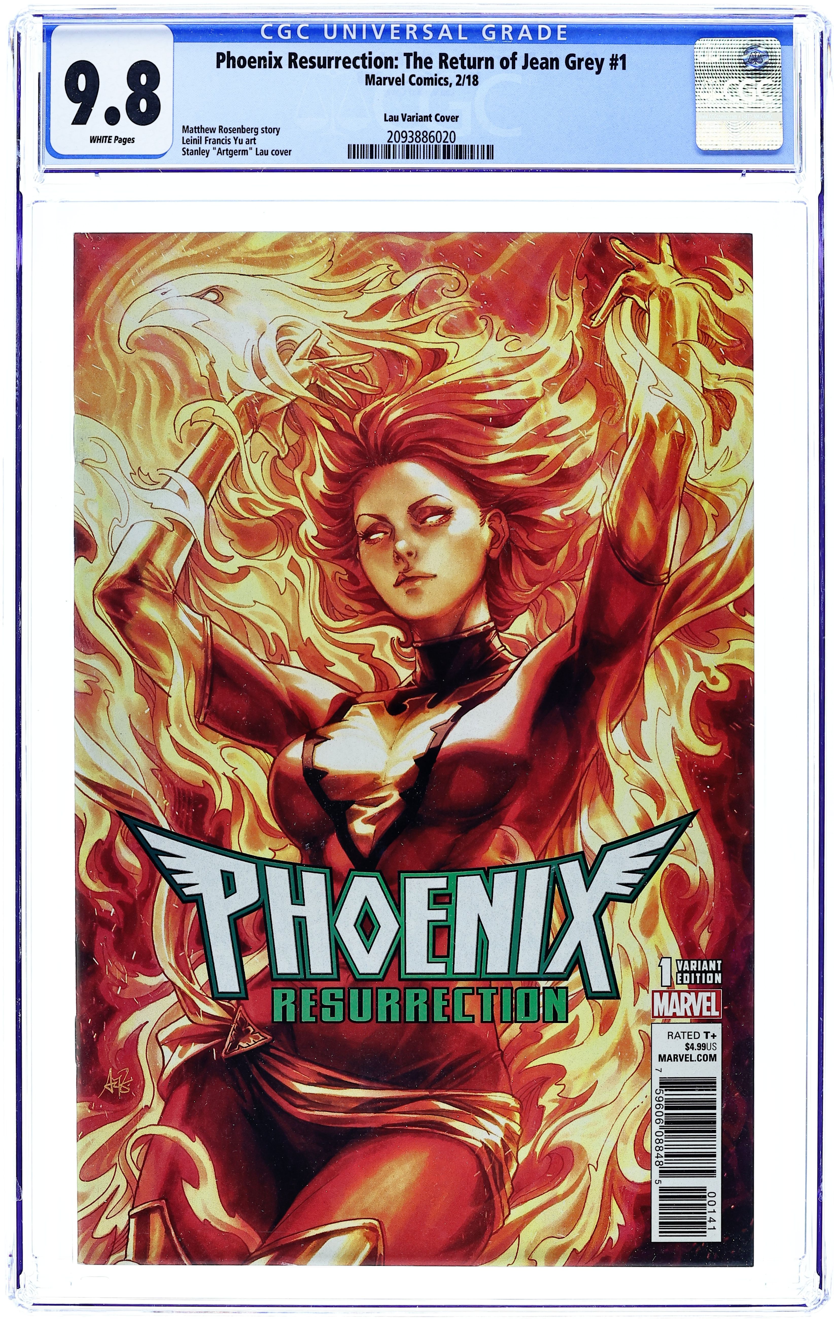 Unknown Comics and Boom Comic Cards and More Exclusive Virgin cover by Terry Dodson. Written by Matthew Rosenberg. Art by Leinil Francis Yu. She will return, like a Phoenix from the ashes. Years ago, Jean Grey died and the X-Men mourned her. Since then, the world has changed, her teammates have lived without her and died without her. And now, when strange events start happening all over the world, those teammates can only come to one conclusion - the one true Jean Grey is back! 36 pages, full color. Rated T+
