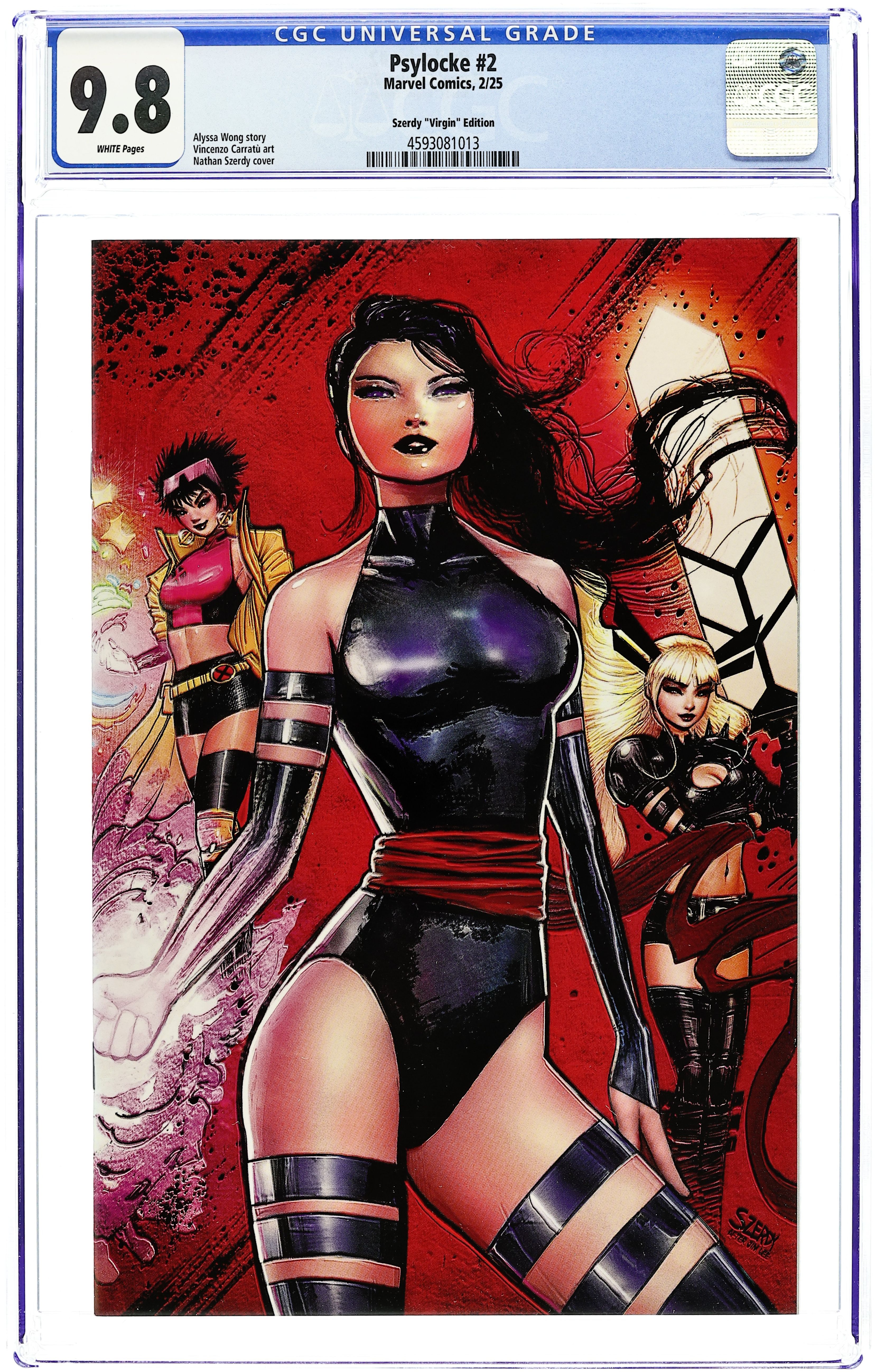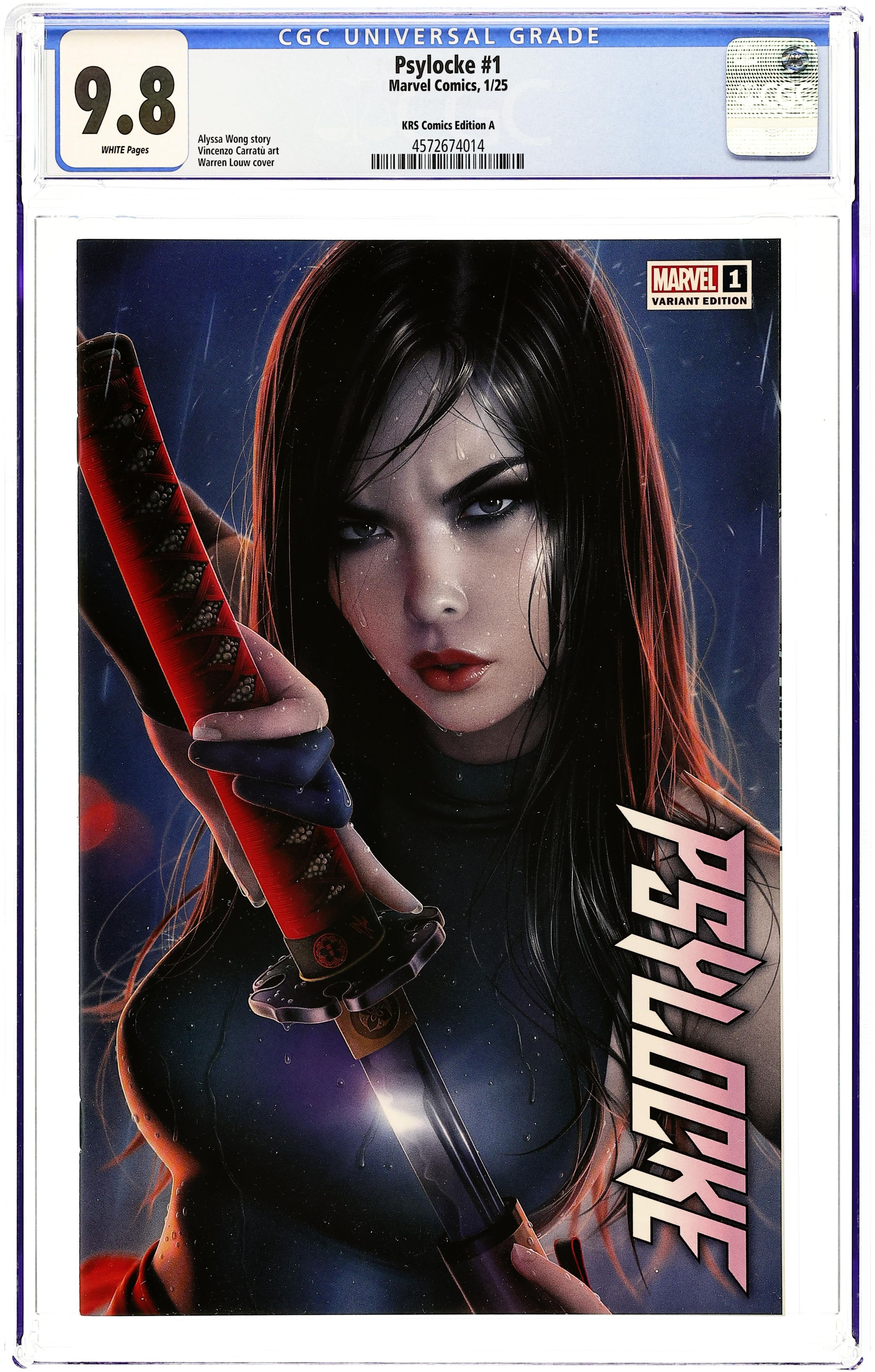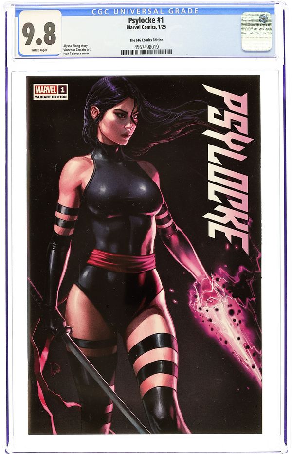 Limited 1 for 100 Retailer Incentive Variant Cover. Written by Alyssa Wong. Art by Vincenzo Carrafu. Cover by Artgerm. SHE WAS MADE FOR VIOLENCE! Trained to be an assassin since birth, Kwannon chose to be an X-Man. But there are still some jobs too dirty for the X-Men. And some paths have to be walked alone. When the mission is brutal, Psylocke unsheathes her blades to punish those who prey on mutants. Exploding out of the pages of X-MEN, Alyssa Wong and Vincenzo Carratù take Psylocke into the underbelly of the Marvel Universe, carving out her own place in a world that would rather see her under control! 32 pages, full color. Rated T+ Cover price $4.99.