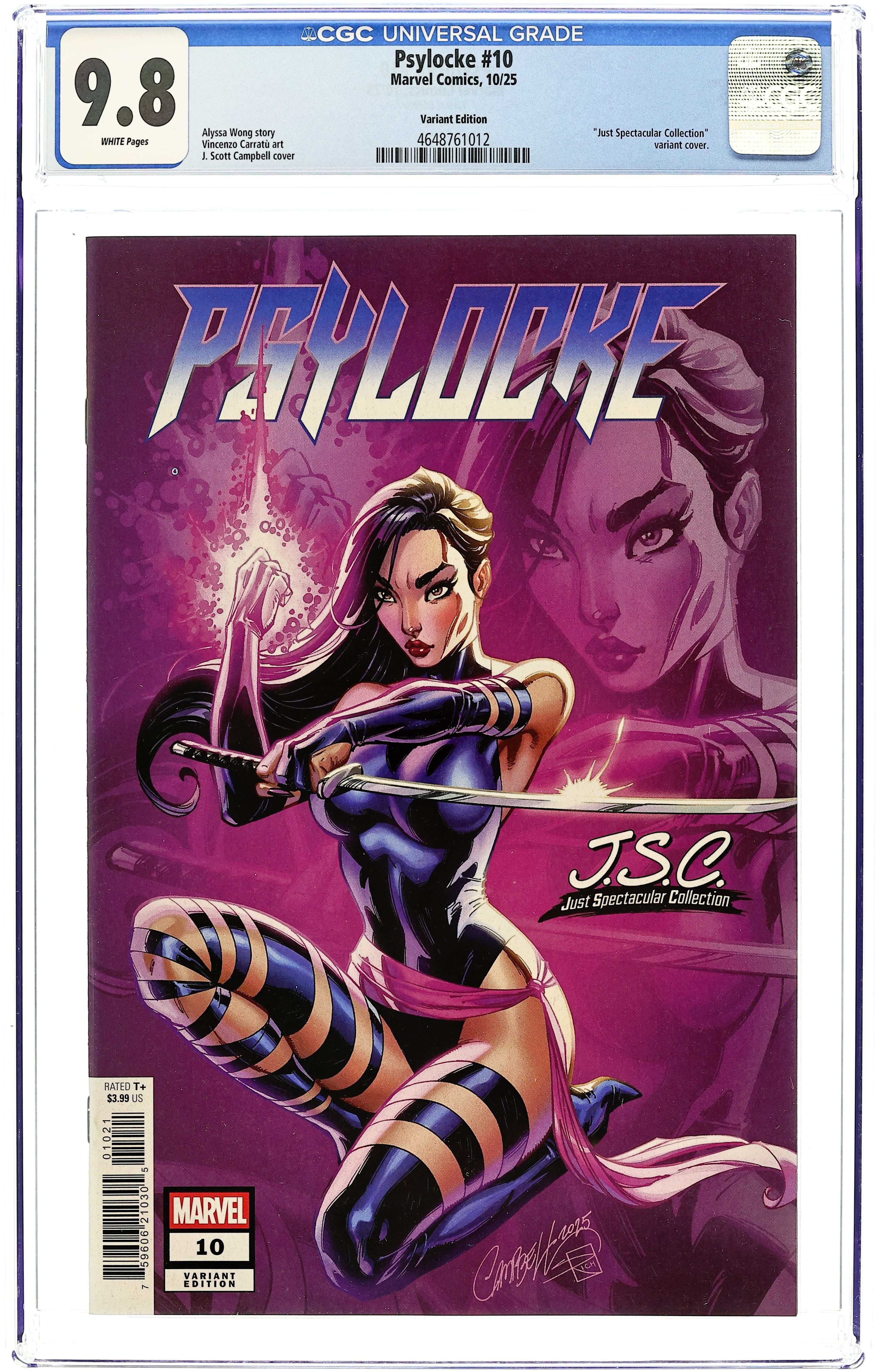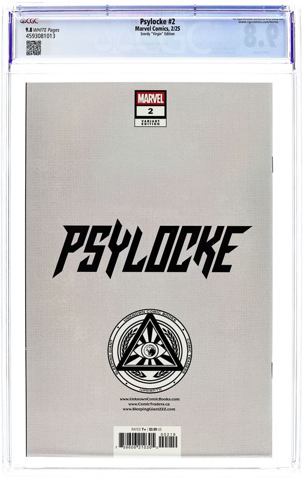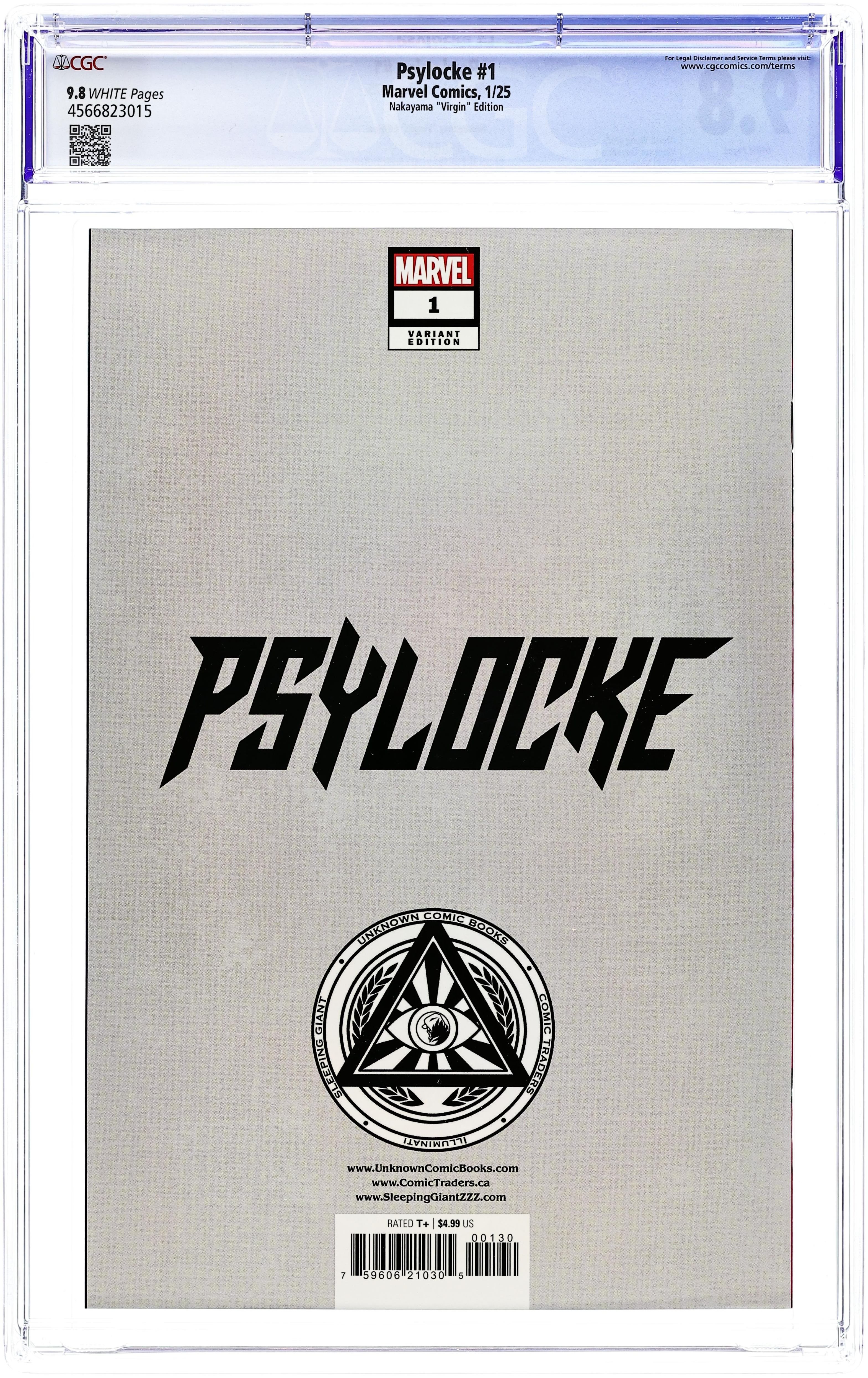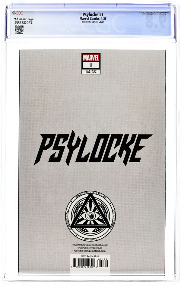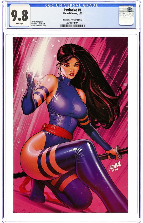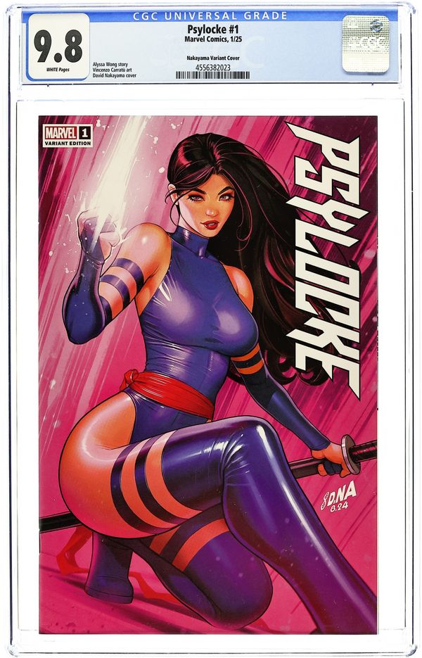Comics Illuminati (Unknown Comic Books, Comic Traders, and Sleeping Giant) Exclusive Variant Cover by David Nakayama. Written by Alyssa Wong. Art by Vincenzo Carratù. SHE WAS MADE FOR VIOLENCE! Trained to be an assassin since birth, Kwannon chose to be an X-Man. But there are still some jobs too dirty for the X-Men. And some paths have to be walked alone. When the mission is brutal, Psylocke unsheathes her blades to punish those who prey on mutants. Exploding out of the pages of X-MEN, Alyssa Wong and Vincenzo Carratù take Psylocke into the underbelly of the Marvel Universe, carving out her own place in a world that would rather see her under control! 32 pages, full color. Rated T+ Cover price $4.99.