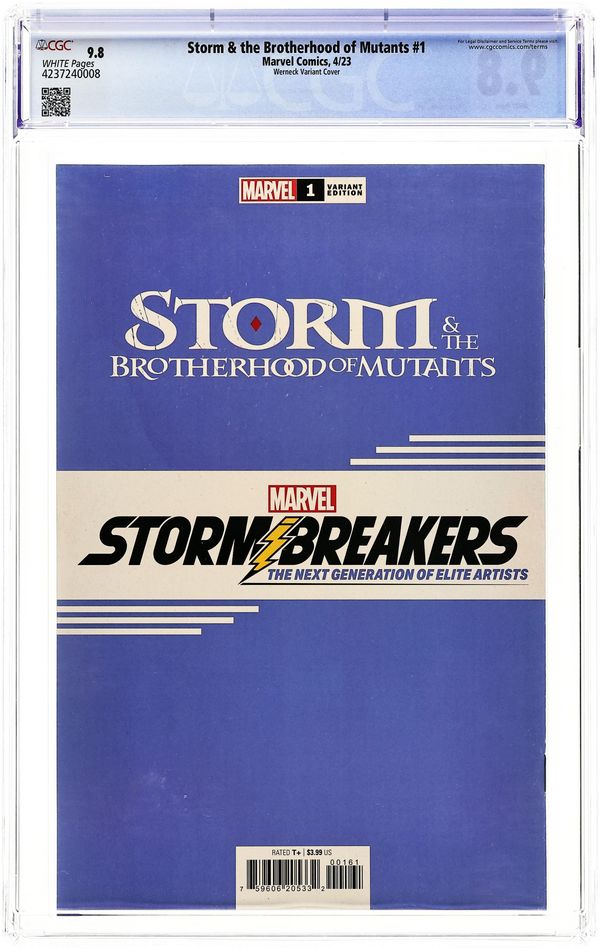 Comics Illuminati (Unknown Comics, The 616 Comics, AntiHero Gallery, and Comic Traders) exclusive Virgin Cover by Sabine Rich. Written by Ann Nocenti. Art by Sid Kotian. STORM FACES THE BLOWBACK OF HER POWERS! ORORO MUNROE, A.K.A. STORM, has been a thief, a goddess and a leader of the X-MEN - and she's just getting started! With her mutant ability to control the weather bolstered by her top-notch fighting skills, she's a formidable opponent like no other (as CALLISTO of the MORLOCKS can attest)! But when an elemental power emerges near the XAVIER MANSION, it'll take Storm to the limit of her powers and beyond! Get ready for an electrifying all-new series showcasing Storm's days of rocking her mohawk and leading the X-Men, as she faces an ALL-NEW VILLAIN that will threaten to tear her apart from her team…and what she thought she knew about herself! 36 pages, full color. Rated T+