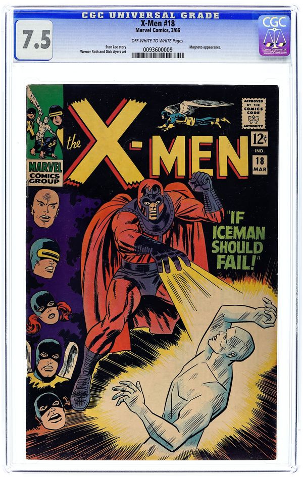 If Iceman Should Fail--!, script by Stan Lee, pencils by Werner Roth [as Jay Gavin], inks by Dick Ayers; With the rest of the X-Men captured in a lead balloon, it is up to an injured Iceman to battle Magneto on his own; Once the X-Men escape Magento's trap, Professor X calls the Stranger who arrives on earth to collect his former captive. 36 pgs. $0.12. Cover price $0.12.