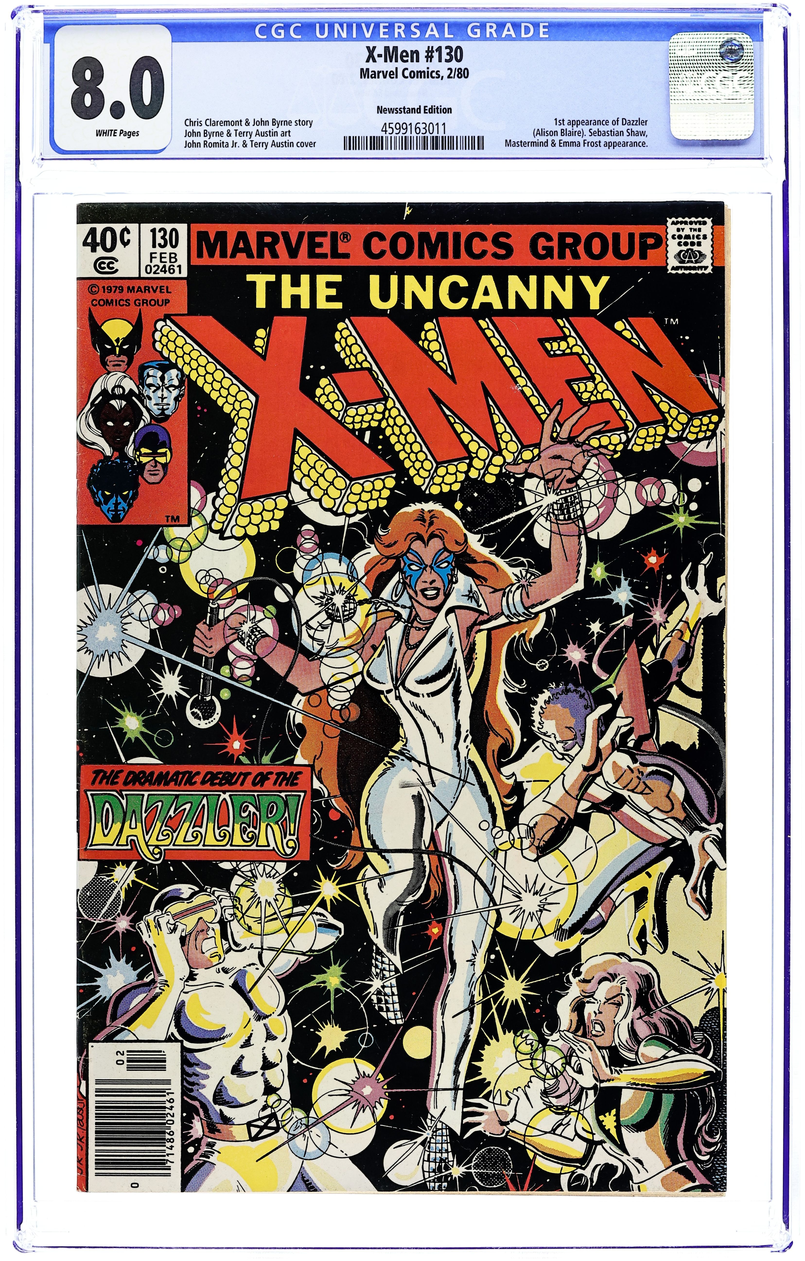Direct Edition. The Dark Phoenix Saga: Part 2 of 9 - "Dazzler!" Story by Chris Claremont and John Byrne. Art by John Byrne and Terry Austin. Wolverine, Colossus, and Storm have been taken captive by the sultry and dangerous White Queen, but for what purpose. Only the young new mutant Kitty Pryde can warn the rest of the team, but will she be in time to save her new friends? Meanwhile, Cyclops and Phoenix encounter another "new mutant" called Dazzler. Plus, Jason Wyngarde continues his mental seduction of Jean Grey. NOTE: 1st appearance of Dazzler. 36 pgs. Cover price $0.40.