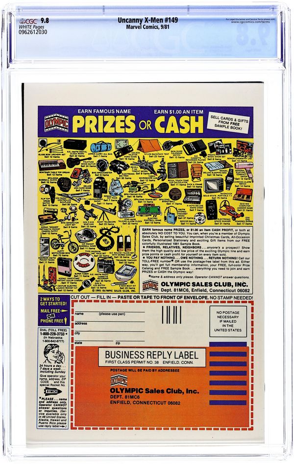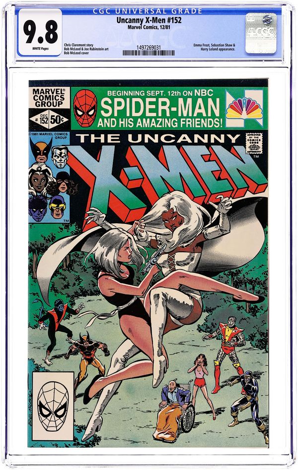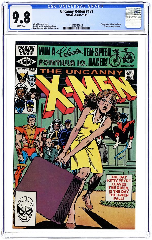 Newsstand Edition. "X-Men Minus One!" Part 1 of 2. Story by Chris Claremont. Art by Jim Sherman, Bob McLeod, and Joe Rubinstein. The X-Men loose one of their own when Kitty's parents take her out of Xavier's School for the Gifted and enroll at the Massachusetts Academy. To make matters worse, the headmistress of the Academy id non other than Emma Frost, the White Queen of the Hellfire Club! Plus, the X-Men are taken off guard when a squad of mutant hunting Sentinels show up. 36 pgs. Cover price $0.50.