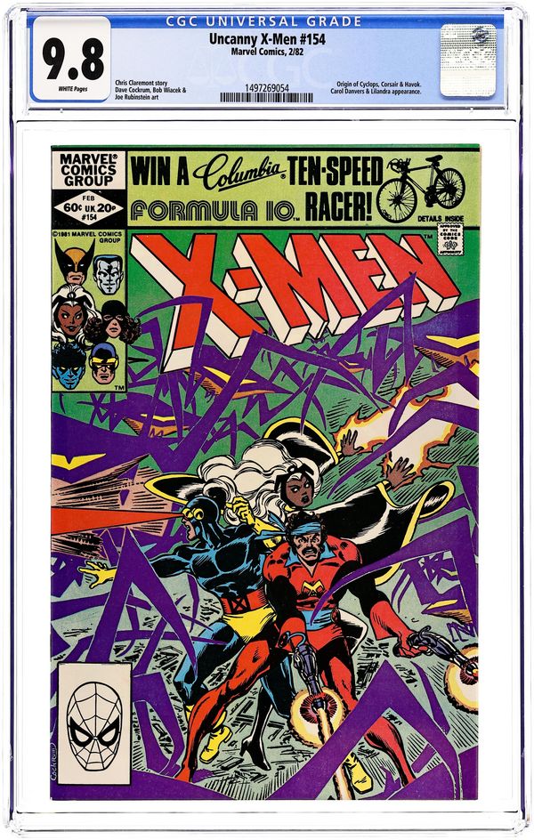 Direct Edition. "Reunion!" Part 1 of 4. Guest-starring Corsair of the Starjammers. Story by Chris Claremont. Art by Dave Cockrum, Bob Wiacek, and Joe Rubinstein. The swashbuckling space-pirate Corsair crash-lands on the school grounds of Xavier's Institute. He comes to the X-Men with a dire warning of impending doom. However, he may not get to deliver his message as he is pursued by an alien contingent of bounty-hunters. determined to stop him. Plus, Cyclops finally learns the truth about his relationship with Corsair! 36 pgs. Cover price $0.60.