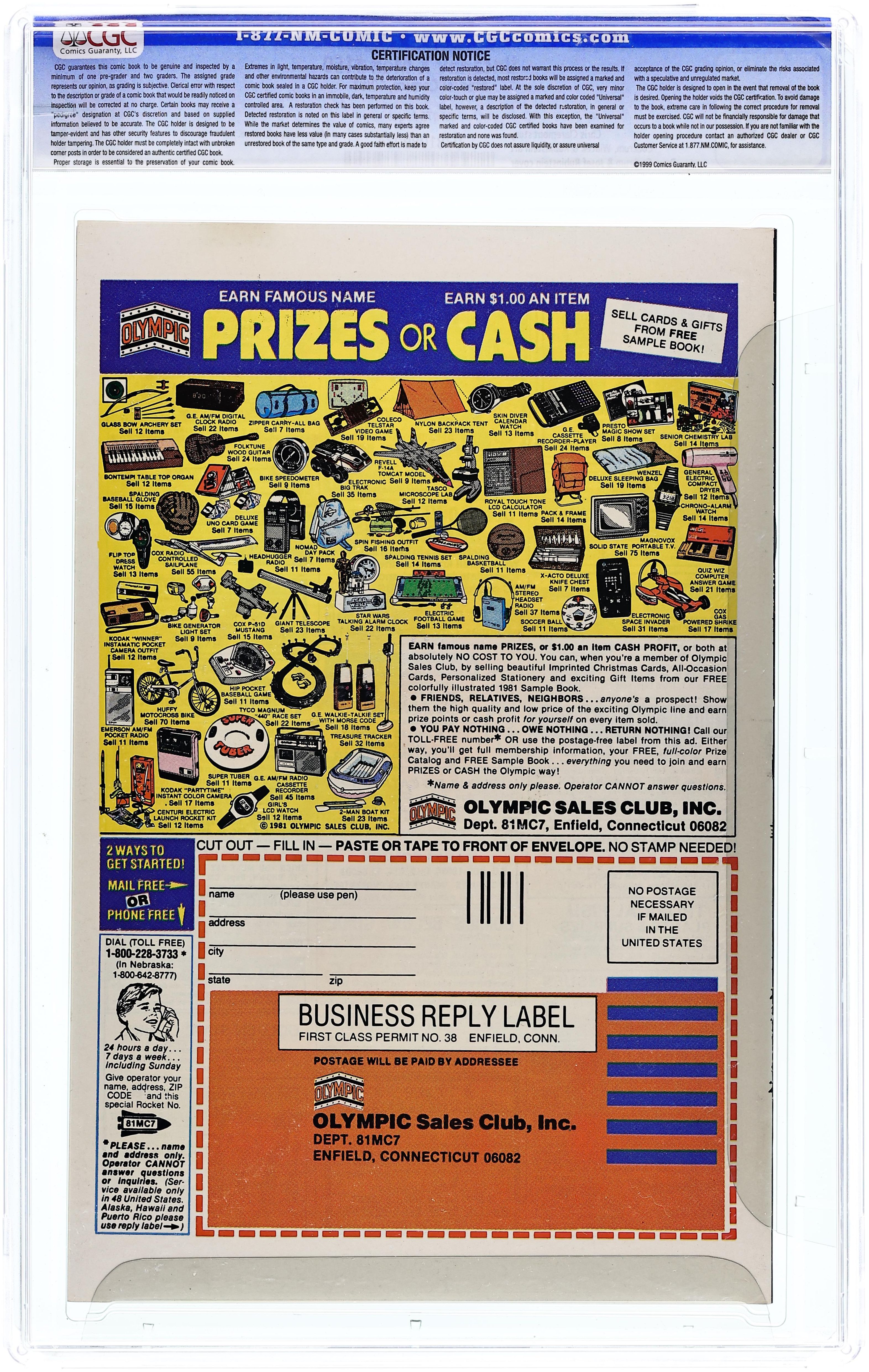 Direct Edition. "Cry, Mutant!" Guest-Starring Spider-Woman (Jessica Drew) and Dazzler. Story by Chris Claremont. Art by Dave Cockrum and Joe Rubinstein. Cyclops and Lee continue to explore the mysterious citadel. Plus, when a mysterious mutant attempts to kidnap Kitty, Storm must team-up with Spider-Woman and Dazzler to save her. 36 pgs. Cover price $0.50.