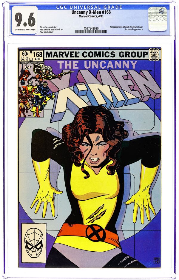 Newsstand Edition. "Professor Xavier is a Jerk!" Story by Chris Claremont. Art by Paul Smith and Bob Wiacek. Professor X has ordered Kitty to leave the ranks of the X-Men, a position she feels she's earned, and join the ranks of the neophyte heroes in training the New Mutants. Needless to say, Kitty is not happy about her mentor's decision. Wolverine begins a leave of absence from the team. Meanwhile, Xavier attempts to adjust to his new body... a body that enables him to walk! Plus, the deadly Sidrian Hunters return (last seen in Uncanny X-Men #154). And in Alaska, Scott runs into a very familiar face. Wolverine's story continues in Wolverine (1982 Limited Series) #1. NOTE: 1st appearance of Madelyne Pryor. 36 pgs. Cover price $0.60.