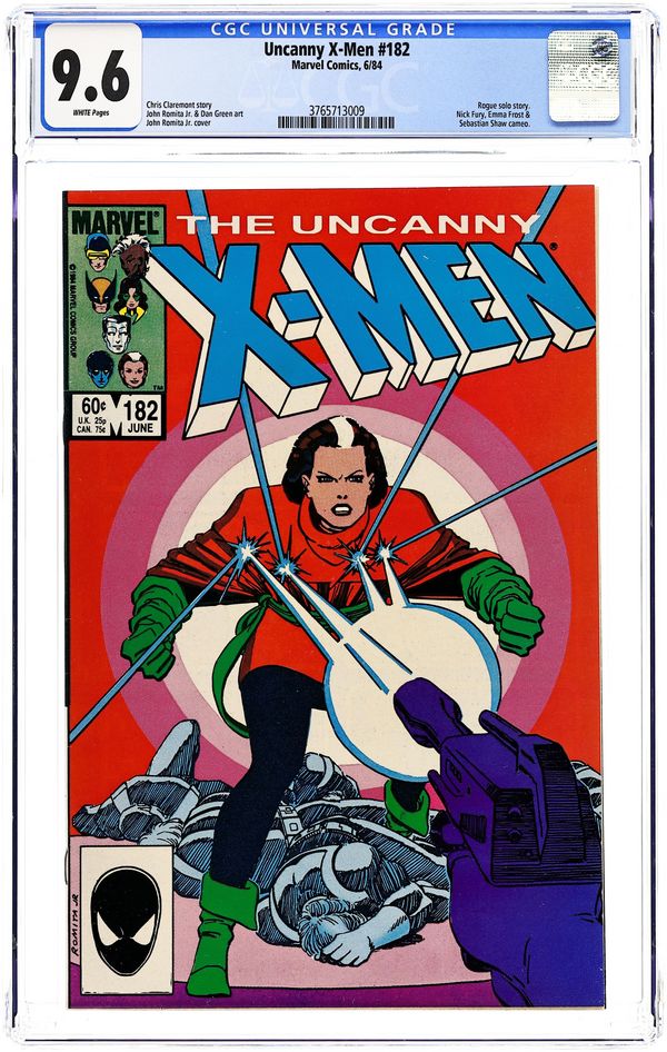 "Madness!" Nick Fury cameo. Story by Chris Claremont. Art by John Romita, Jr. and Dan Green. Rogue sets out on a solo adventure that will have her facing her biggest fears. Guest-starring S.H.I.E.L.D.! 36 pgs. Cover price $0.60.