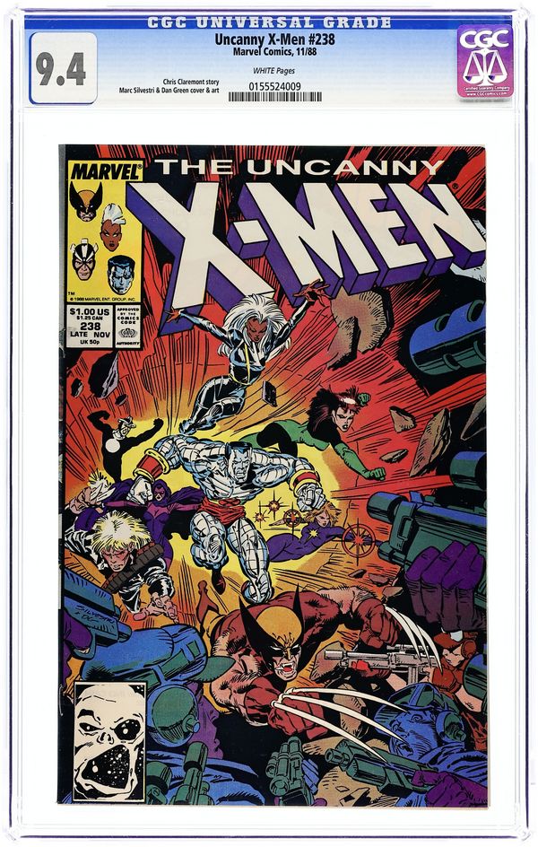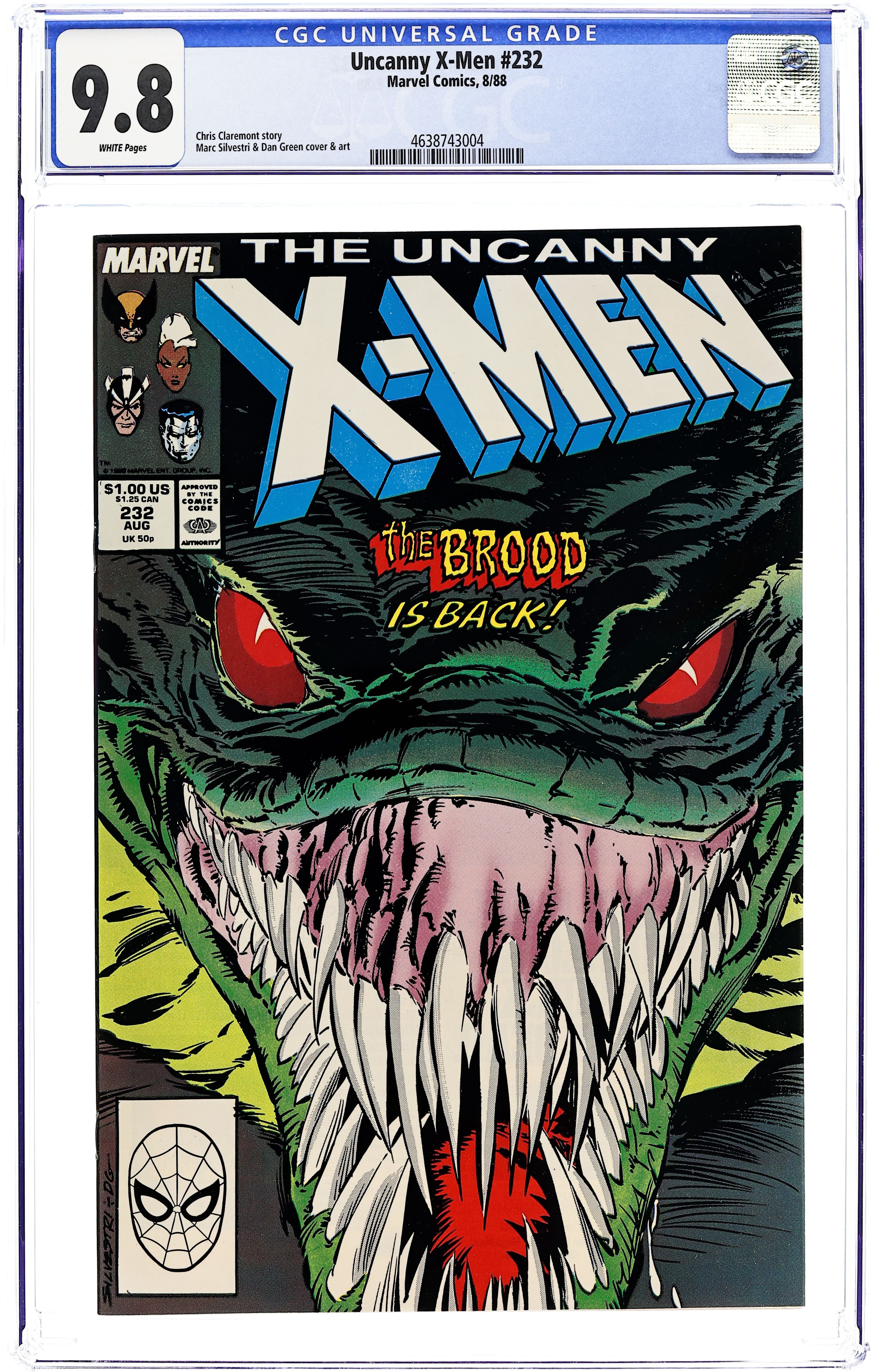 Direct Edition. "Glory Day!" Part 3 of 3. Story by Chris Claremont. Art by Marc Silvestri and Joe Rubinstein. Cover by Marc Silvestri and Dan Green. Don't miss the cataclysmic conclusion to the epic Brood storyline. If the X-Men fall, mankind is doomed! Meanwhile, Madelyne Pryor embraces her dark destiny. 36 pgs. Cover price $1.00.