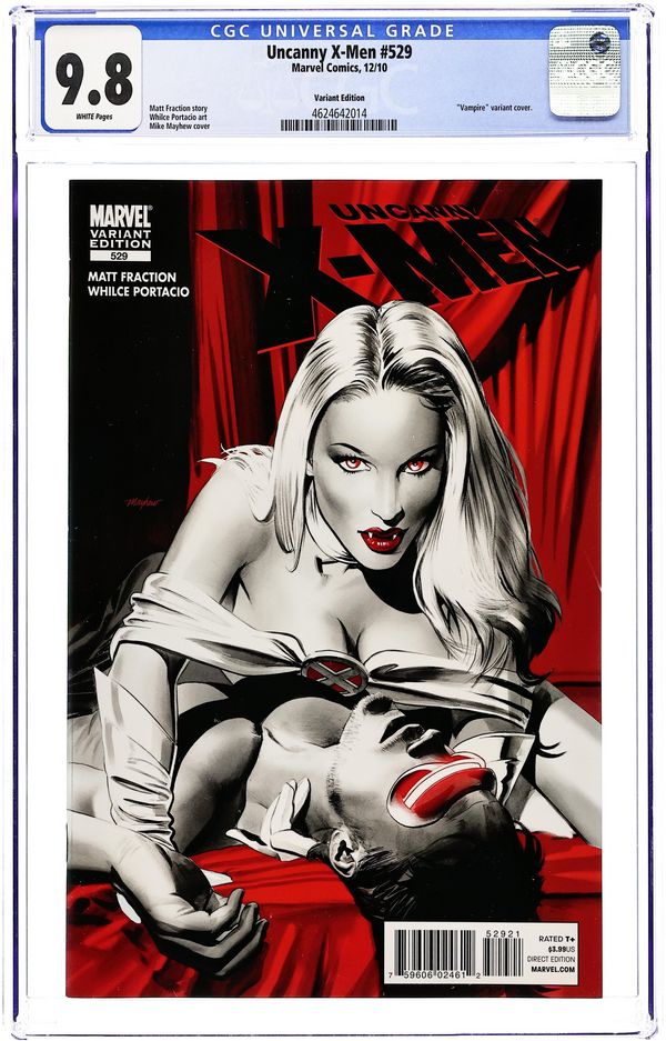 Limited 1 for 15 Vampire Variant Cover by MIKE MAYHEW. The Five Lights: Part 4 of 5 - Written by MATT FRACTION. Penciled by WHILCE PORTACIO with HARVEY TOLIBAO, inked by ED TADEO with SANDU FLOREA. 'THE FIVE LIGHTS' If 'Light #4' registered in Kiev, Ukraine, then why the heck isn't he there? The X-Men race to find the latest of the new mutant activations while things come to a head between Emma Frost and her prisoner Sebastian Shaw! Part 4 (of Four) 44 PGS. Cover price $3.99.