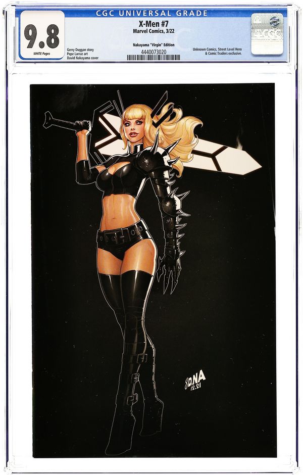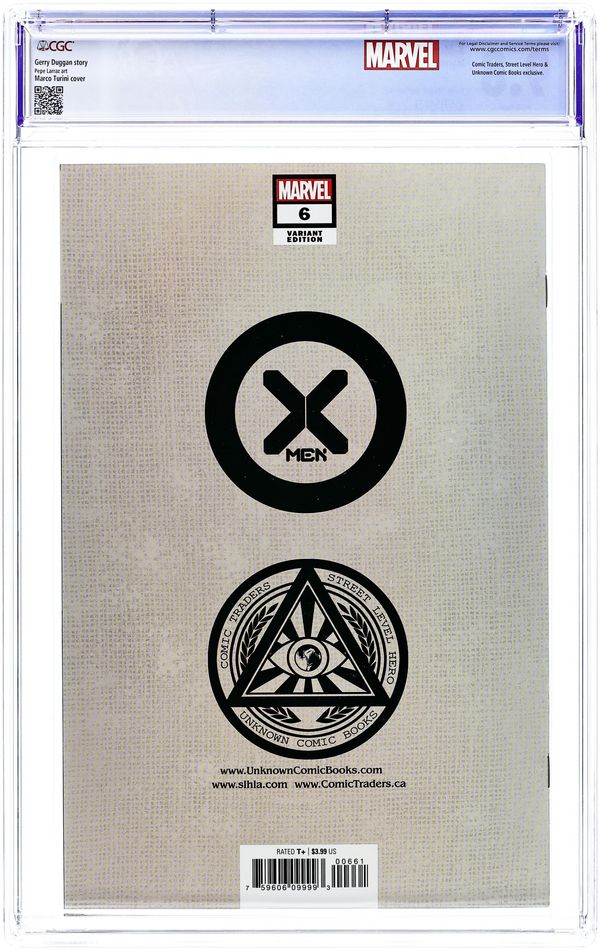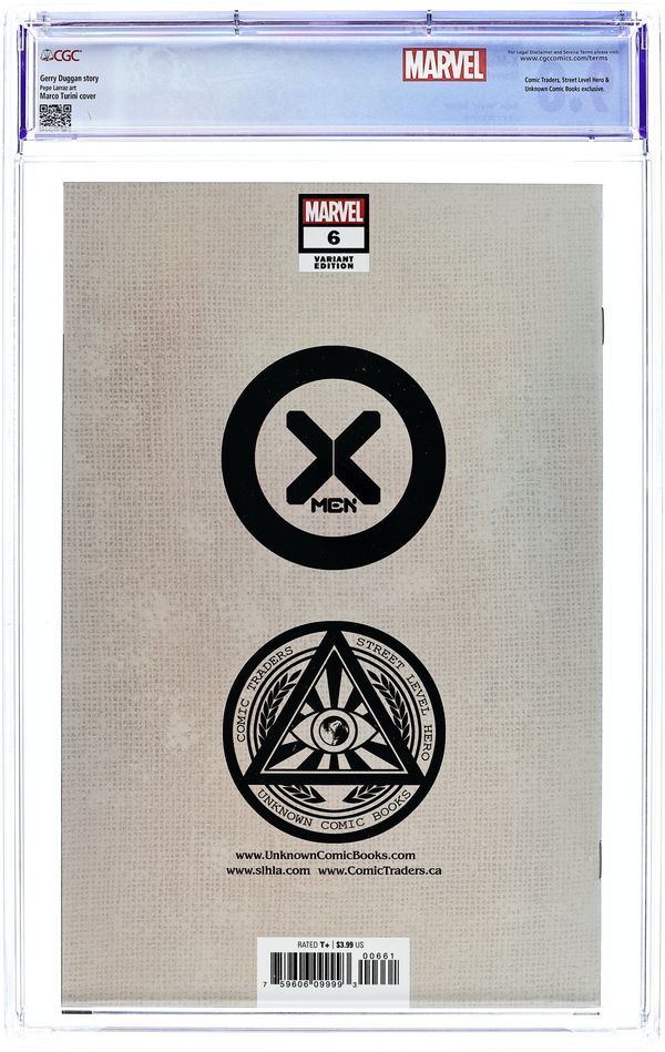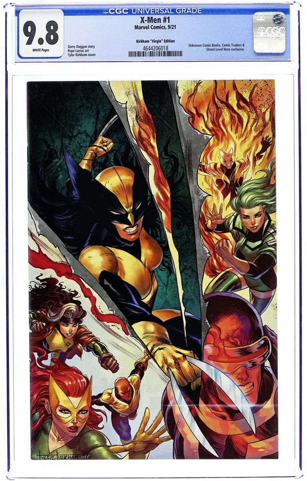 Comics Illuminati (Unknown Comics, Comic Traders, and Street Level Hero) exclusive X-Men #11 homage Virgin cover by Miguel Mercado. Written by Jonathan Hickman. Art by Phil Noto. X OF SWORDS FALL OUT !. The Captain Commander of Krakoa made a fateful decision. There's no going back. 28 pages, full color. Rated T+